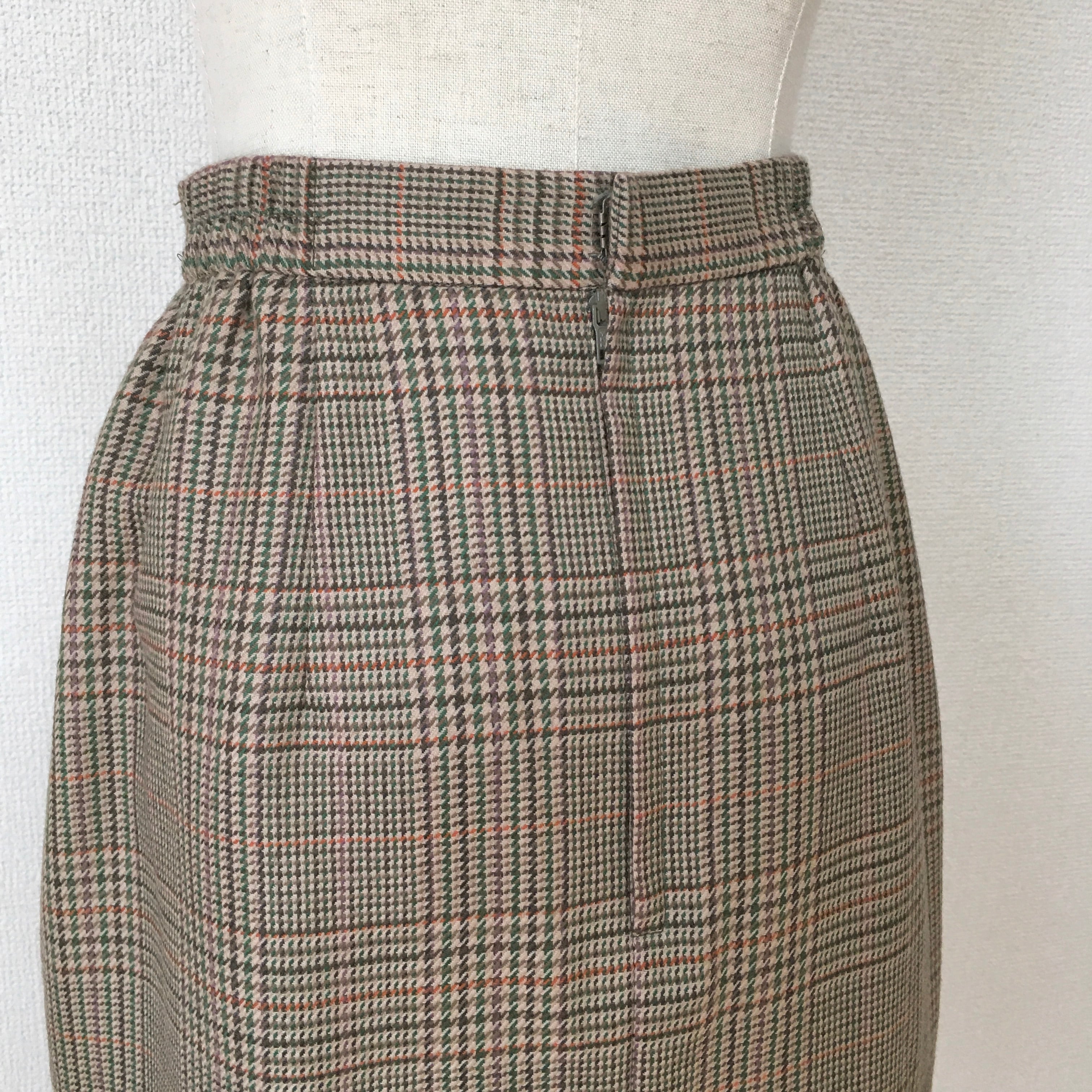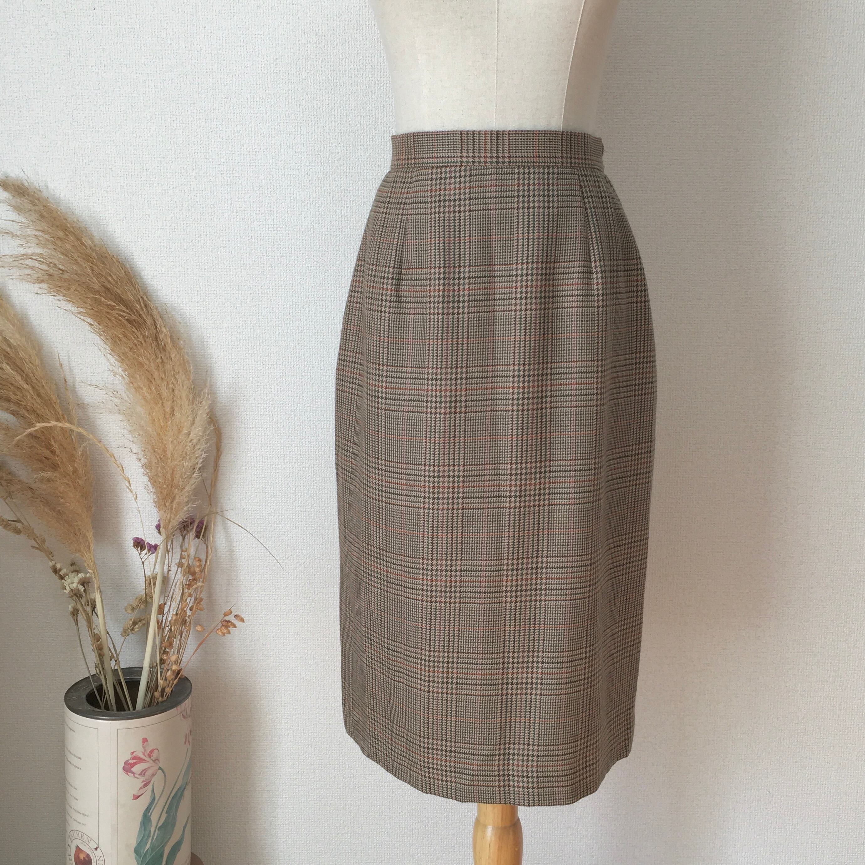 check wool tight skirt〈レトロ古着 チェック柄ウールタイトスカート〉