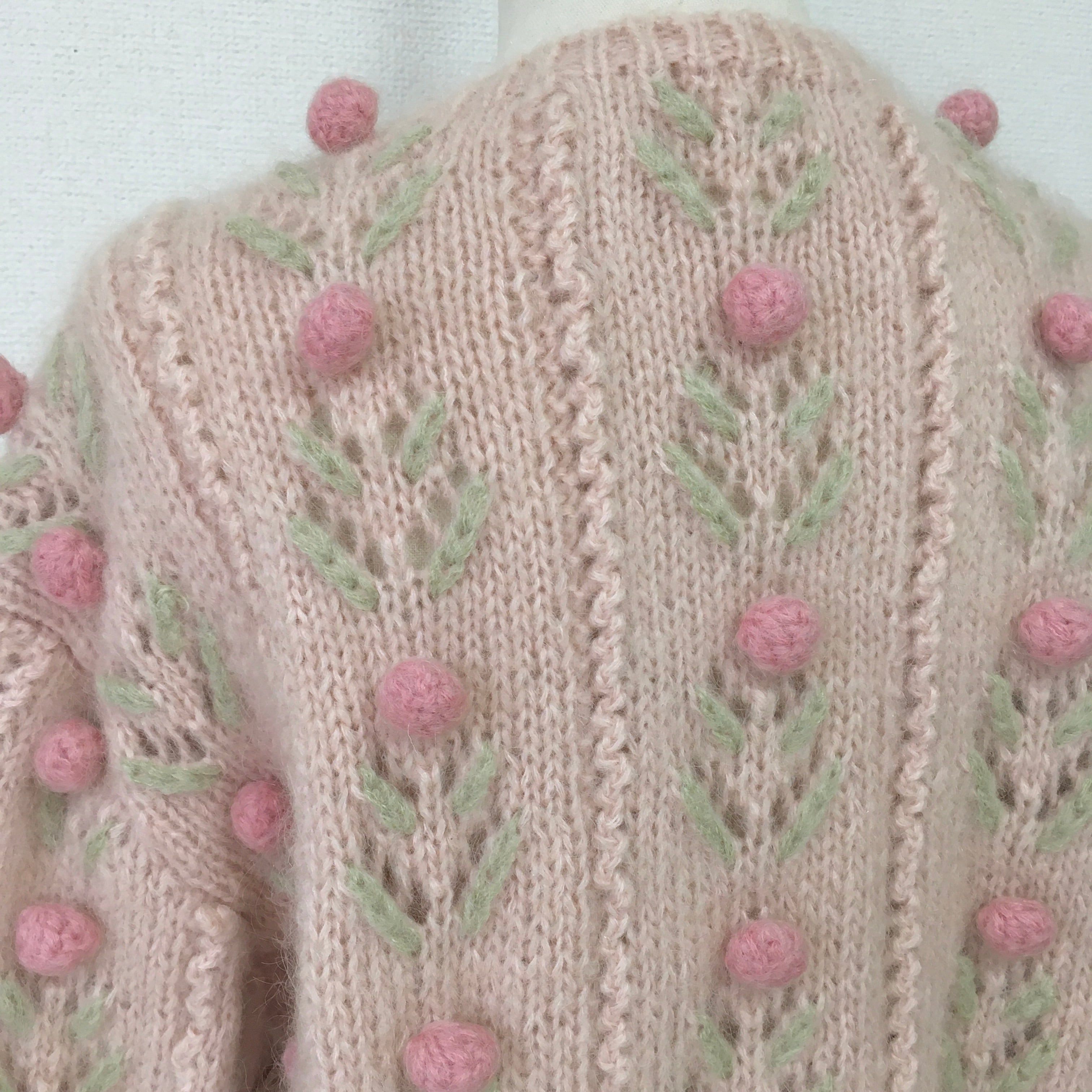 flower pompon knit cardigan〈レトロ古着 フラワーポンポンニットカーディガンピンク〉
