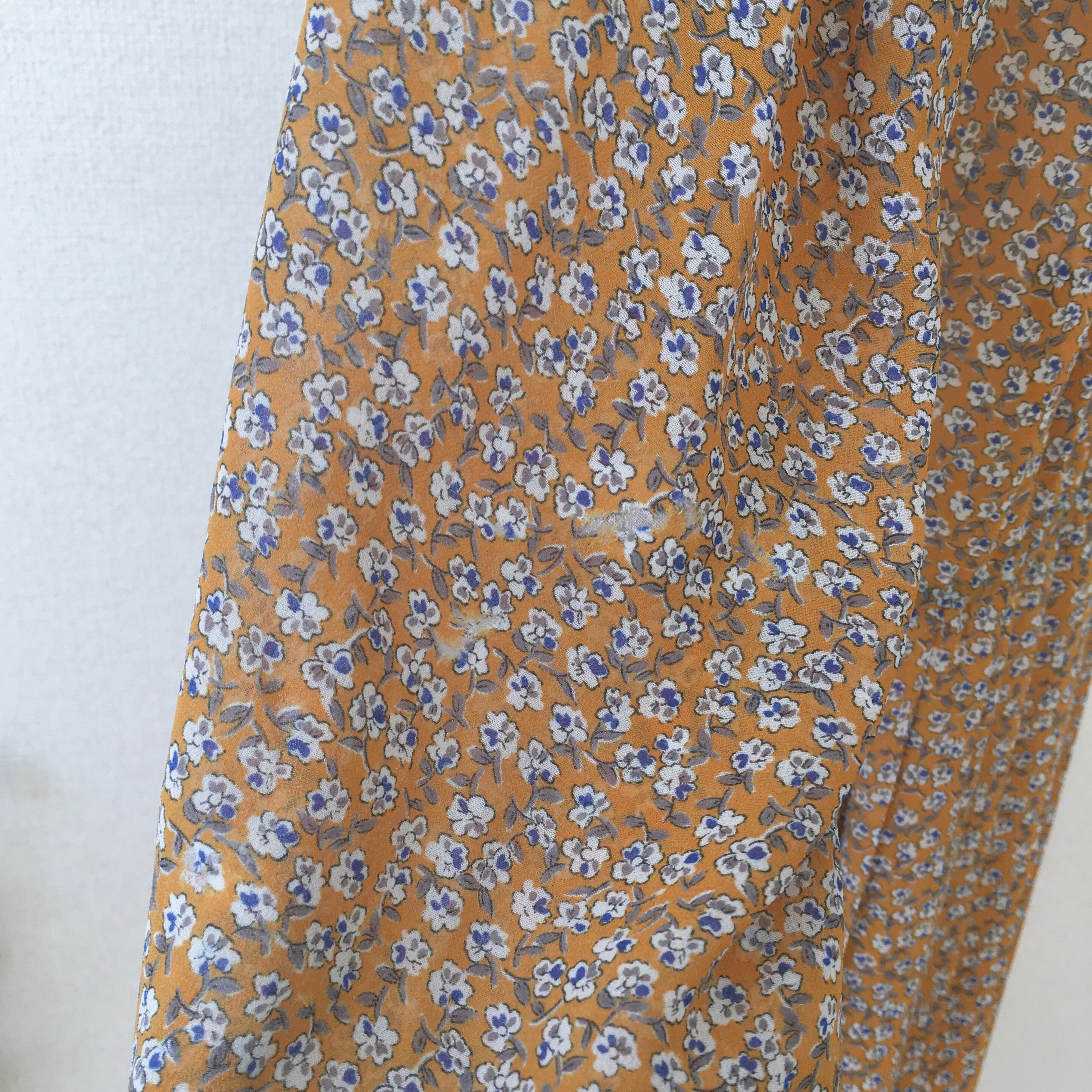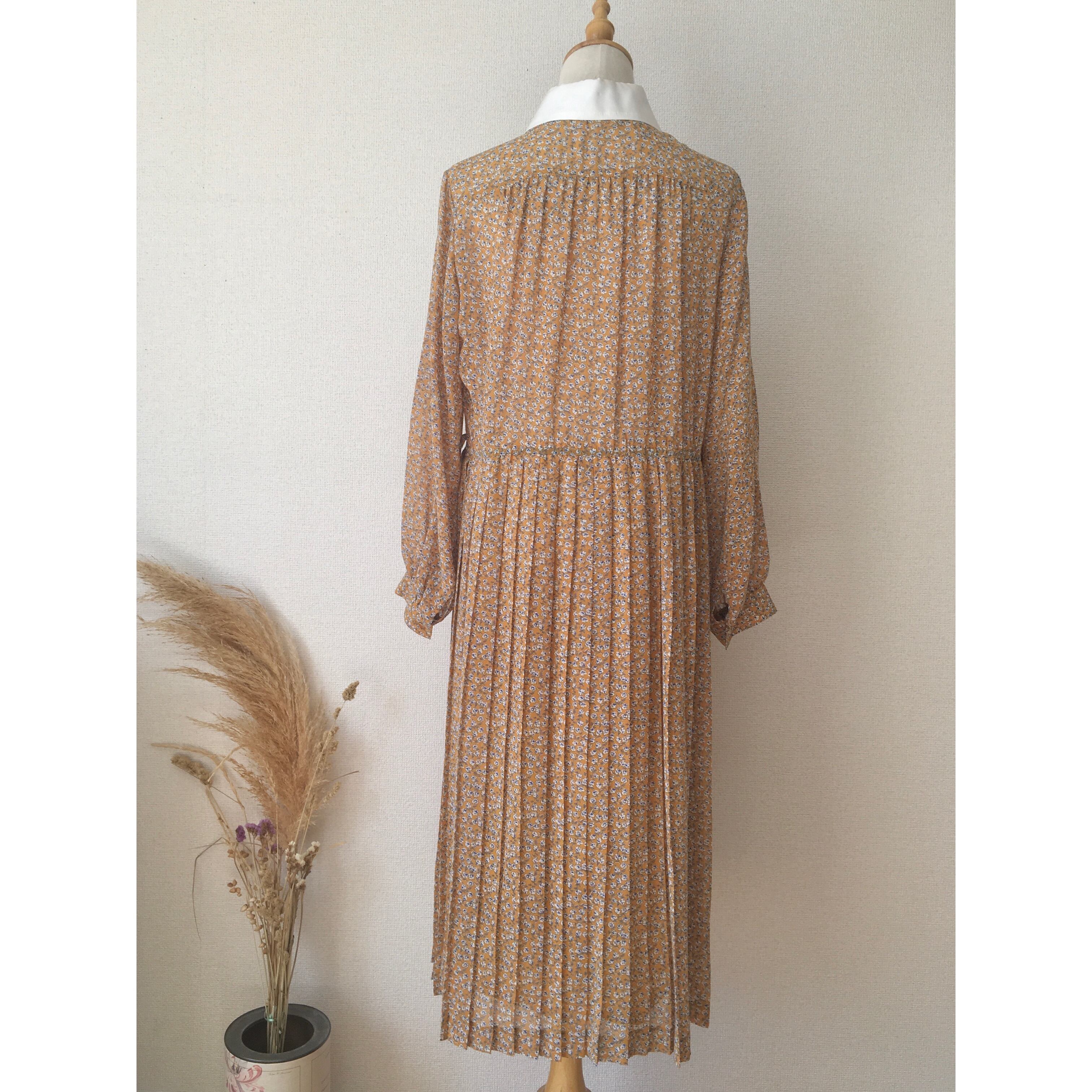 shirt collar floral frills dress〈レトロ古着 シャツカラー花柄フリルワンピース〉
