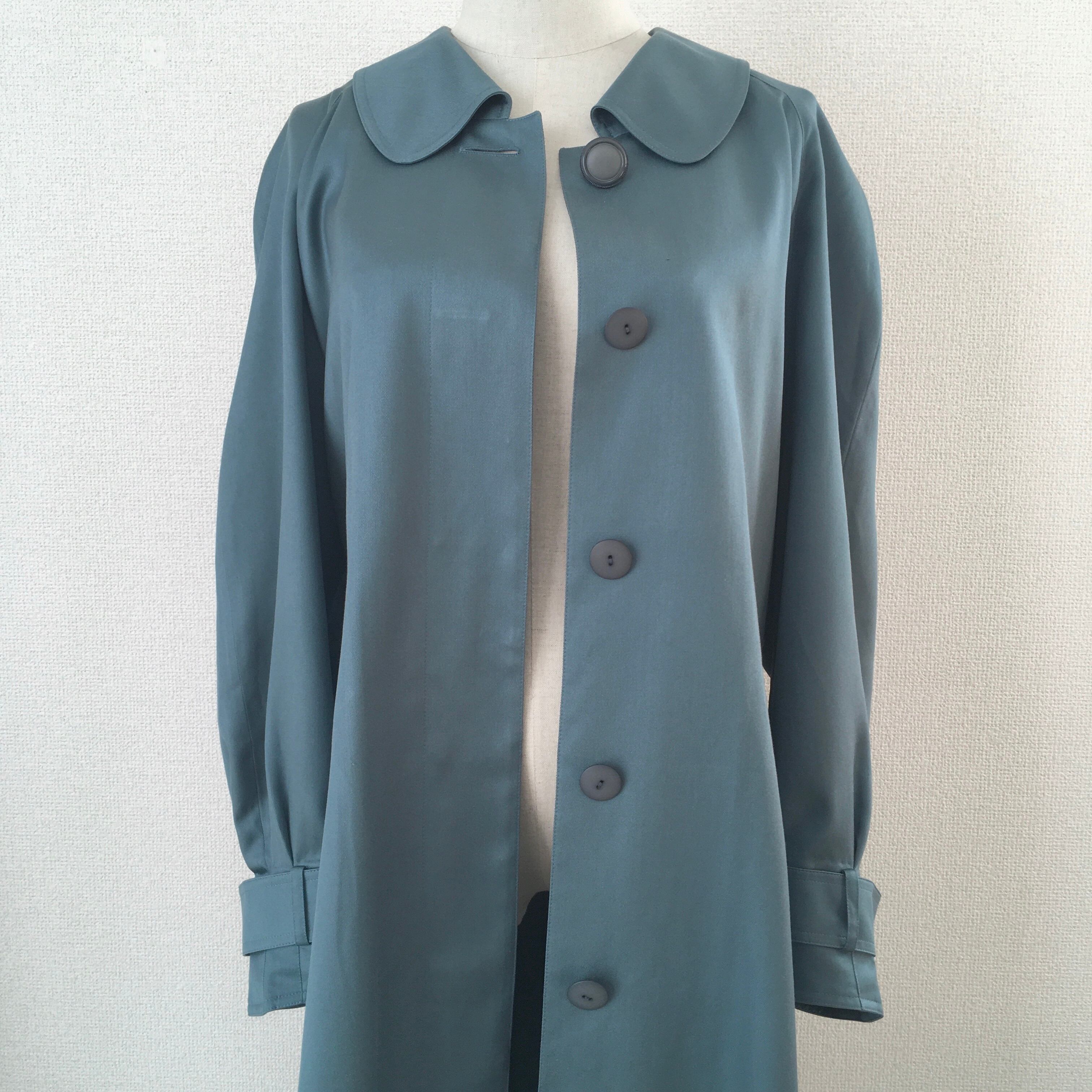 peacock blue silk bal collar coat〈レトロ古着 ピーコックブルー シルクステンカラーコート スプリングコート ロングコート〉