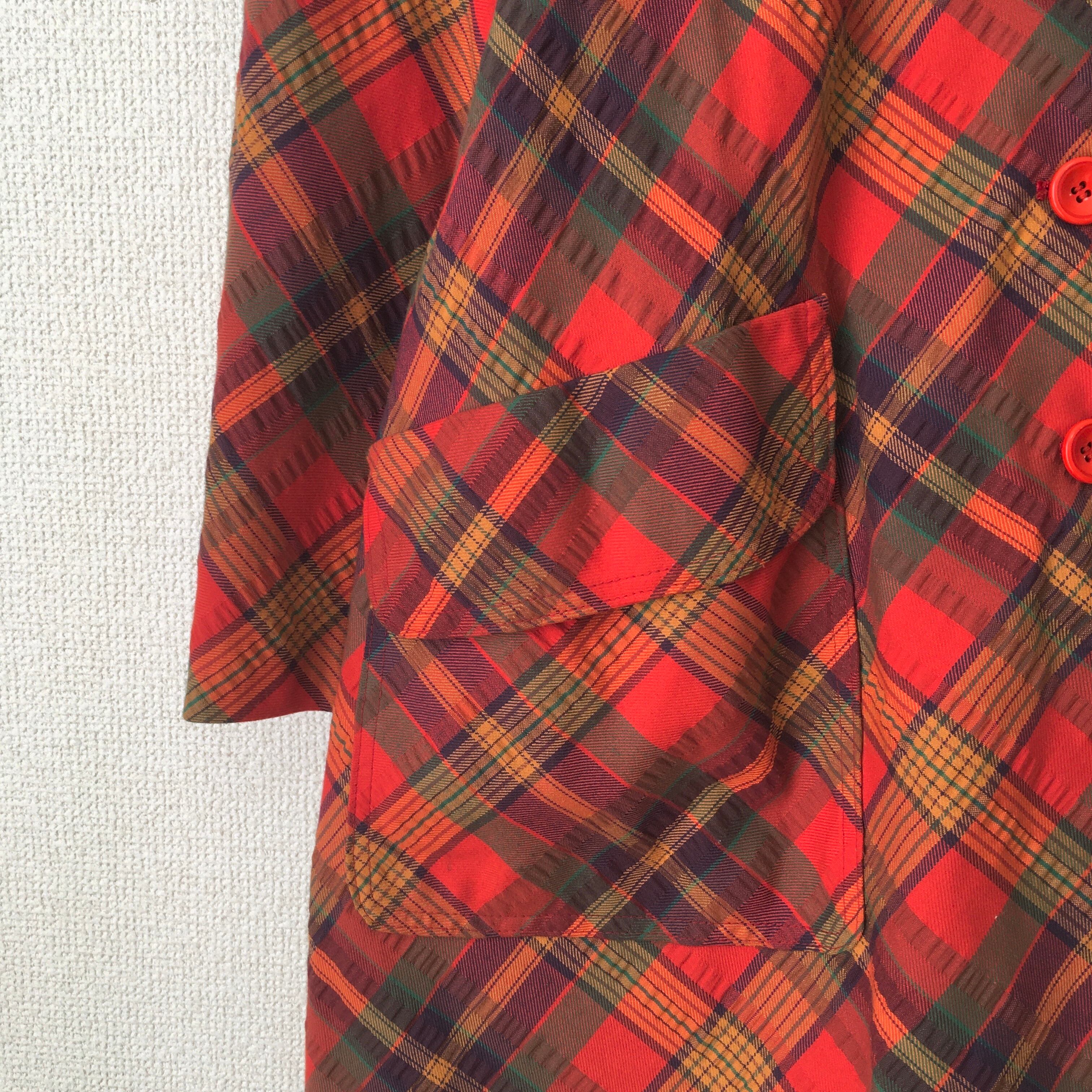 plaid seersucker cotton outer〈レトロ古着 チェック柄サッカー地コットンアウター スプリングコート〉