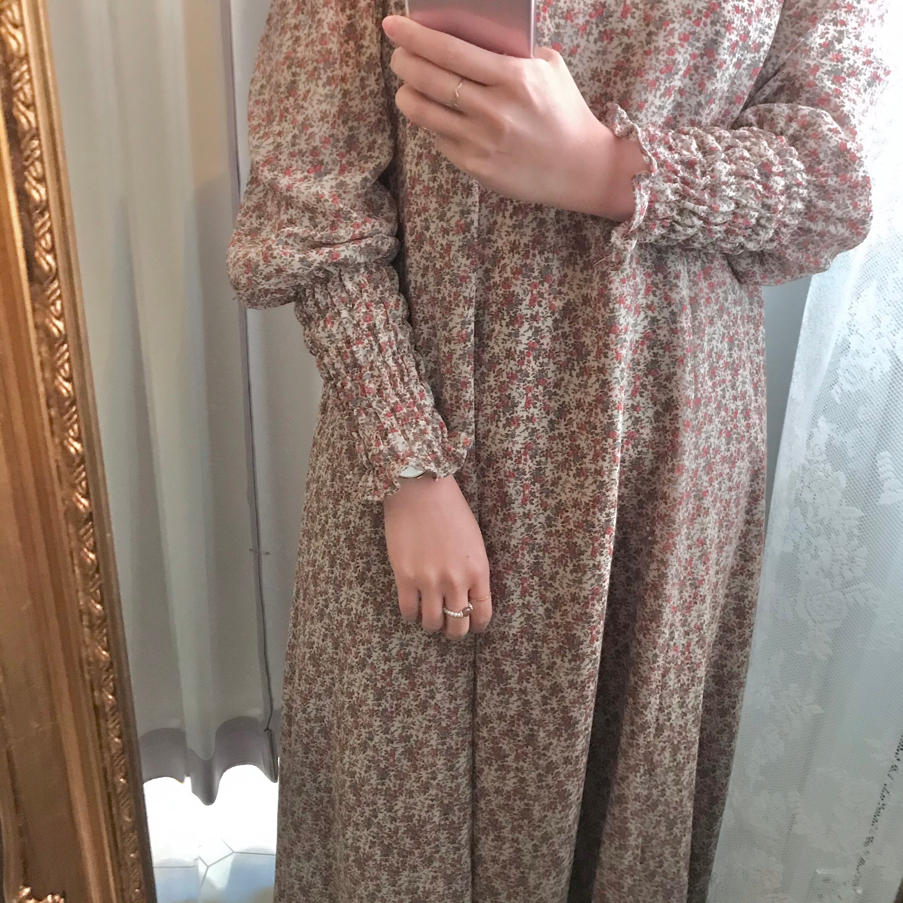 shirring sleeve floral long dress〈レトロ古着 シャーリングスリーブ花柄マキシ丈ワンピース〉