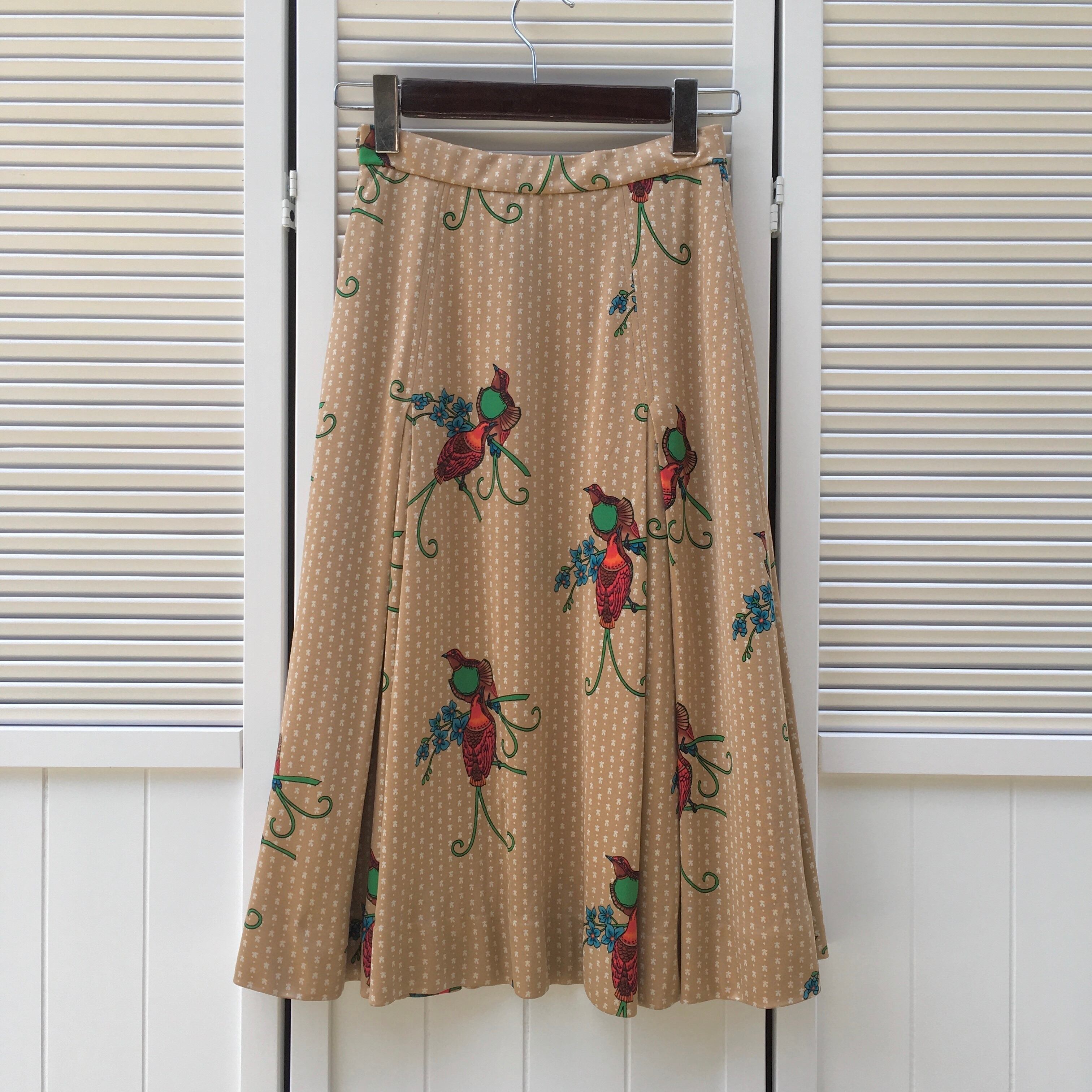 bird motif tuck skirt〈レトロ古着 鳥モチーフタックスカート〉
