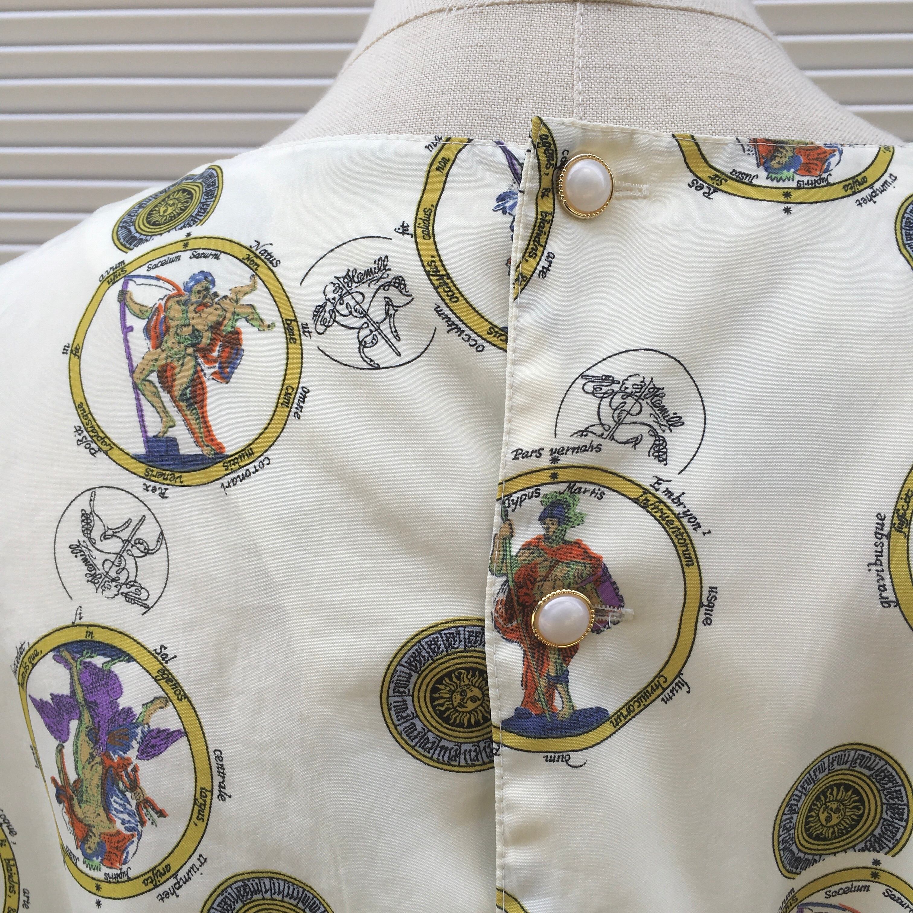 惑星名の由来となったローマ神話の神たちが、ポップな色使いで描かれたブラウス