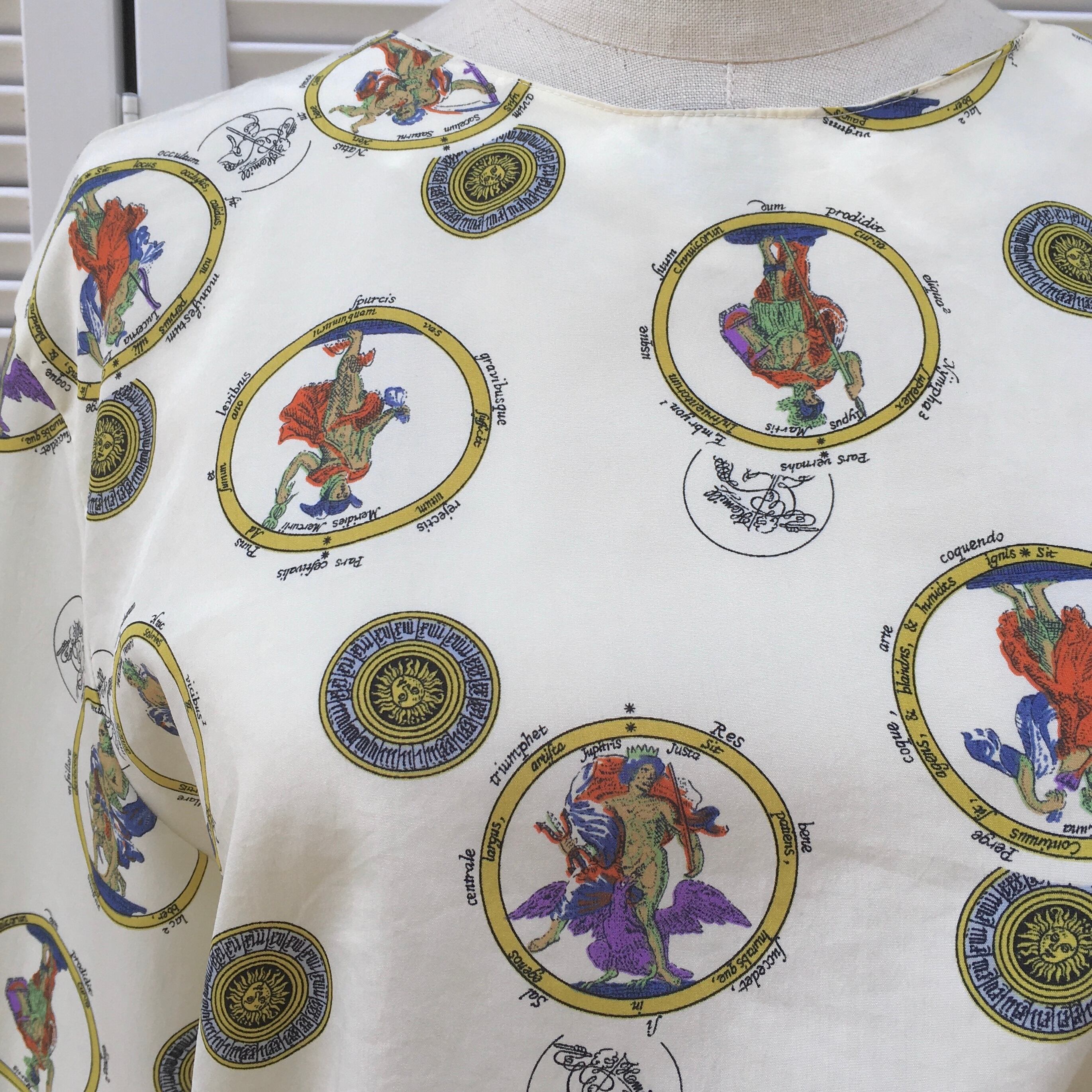 roman mythological motif crew neck blouse〈レトロ古着 ローマ神話モチーフ クルーネックブラウス〉