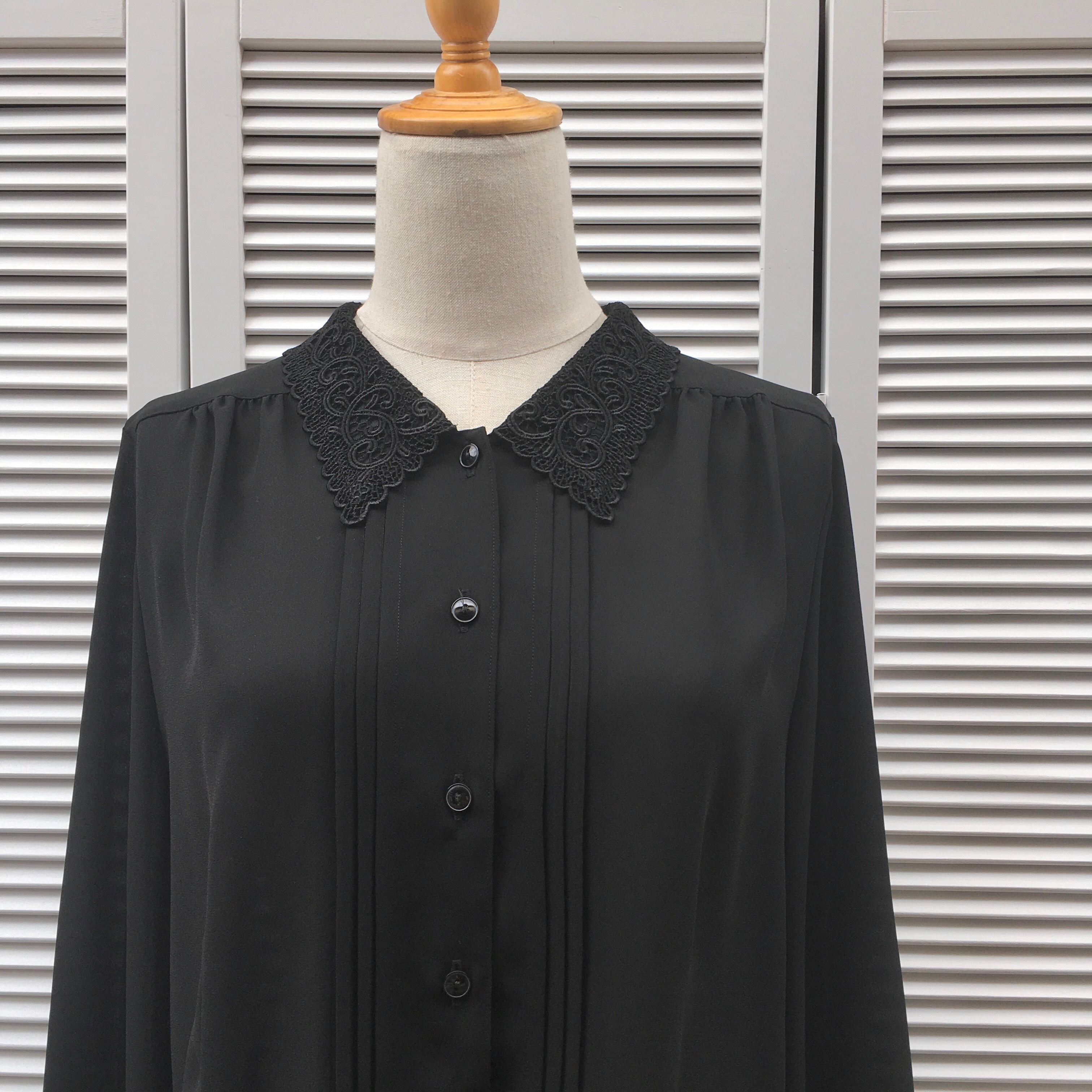 【5/13まで special price】 lace collar pin tuck sheer blouse〈レトロ古着 レース襟ピンタックシアーブラウス〉