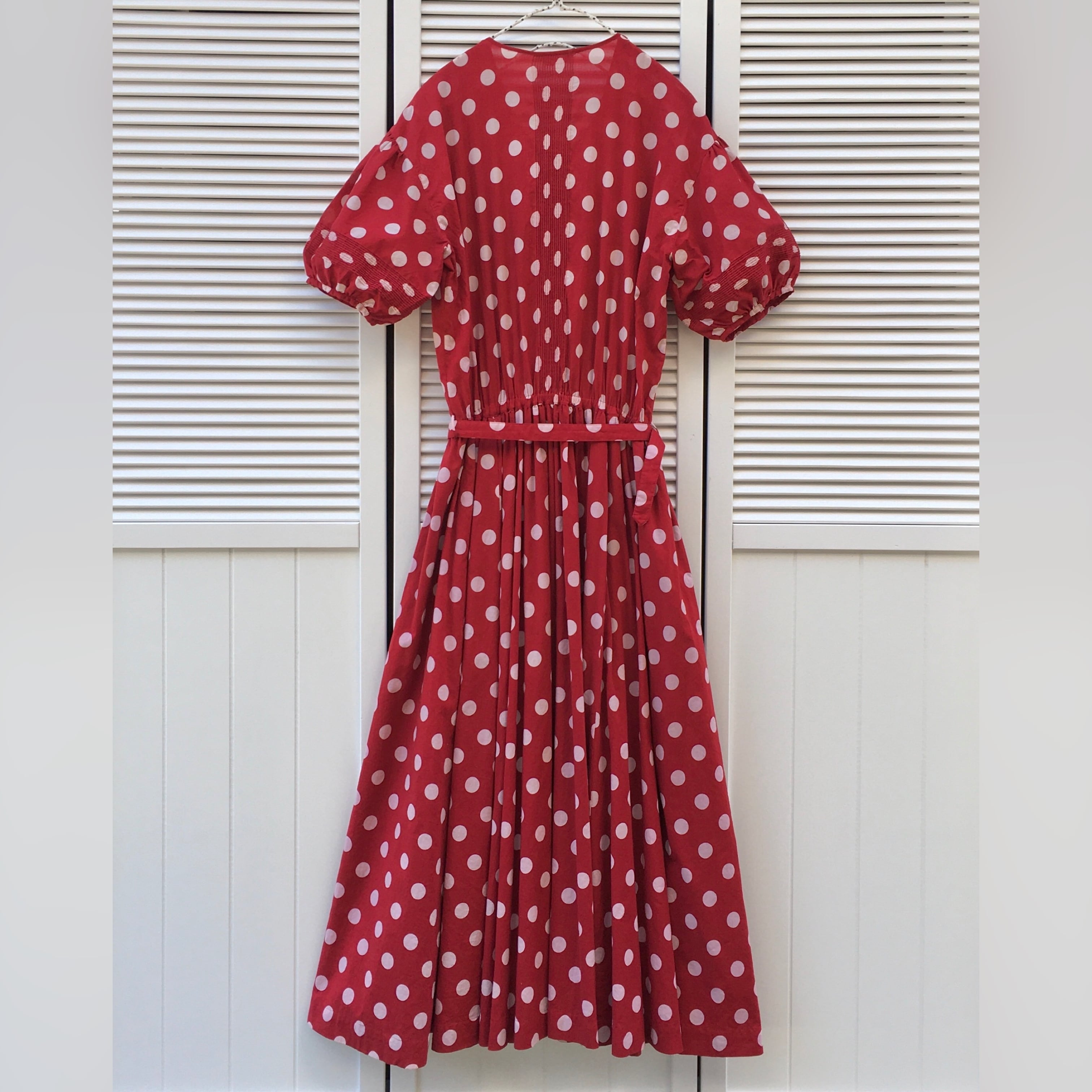 【6/10まで special price】 PINK HOUSE dot ribbon dress〈レトロ古着 ピンクハウス ドット柄リボンワンピース 赤色 水玉 カネコイサオ 金子功〉