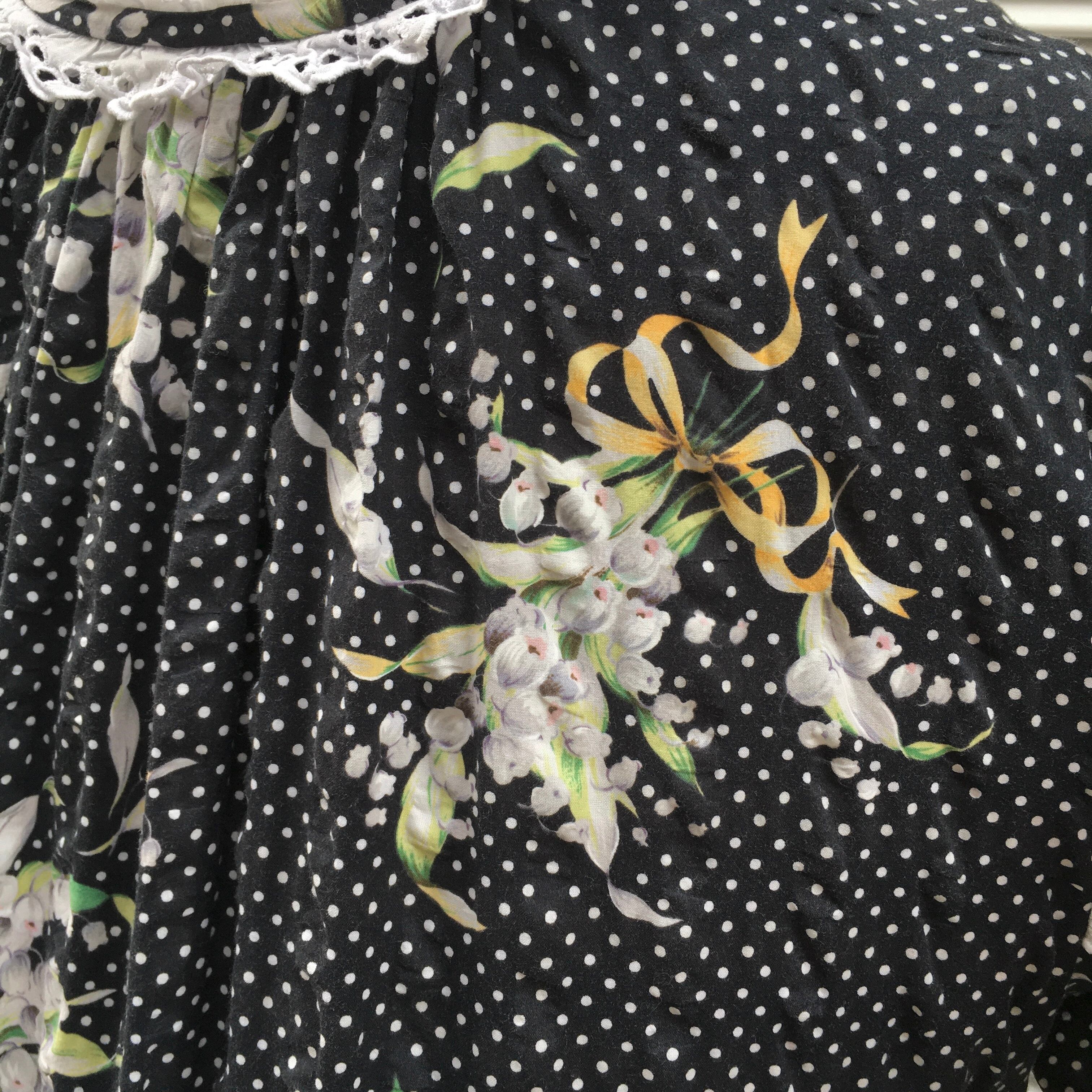 ピンドット地にすずらん柄がレトロな可愛らしさのワンピース