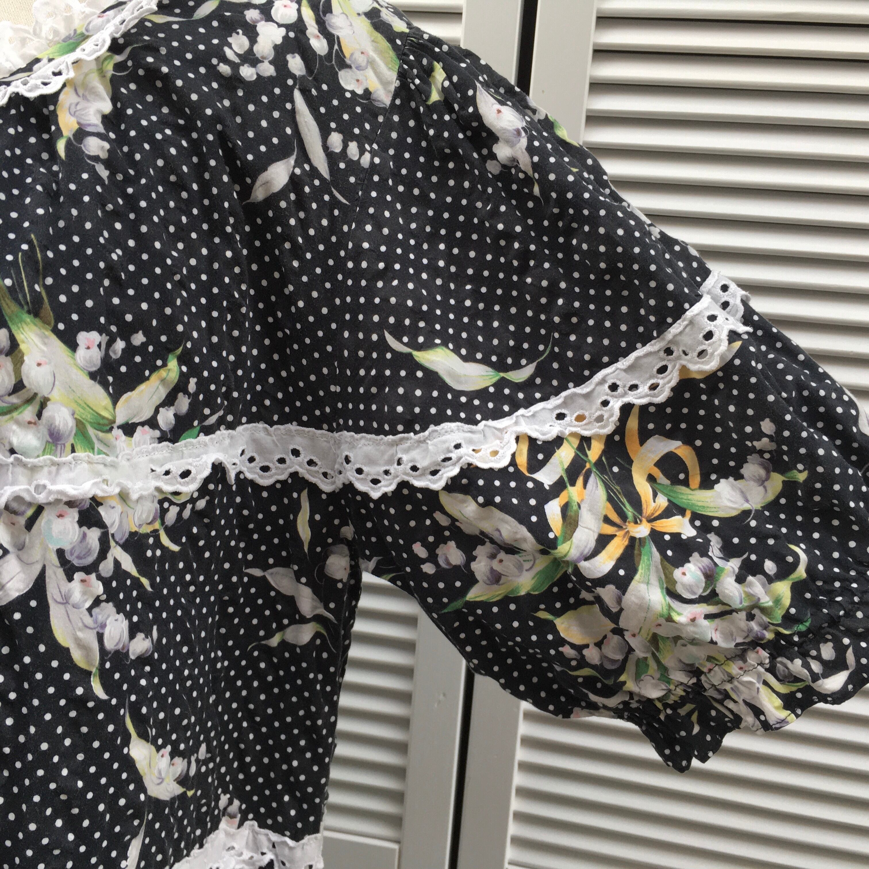 "lily of the valley"motif volume dress〈レトロ古着 すずらん柄ボリュームワンピース ティアード風〉