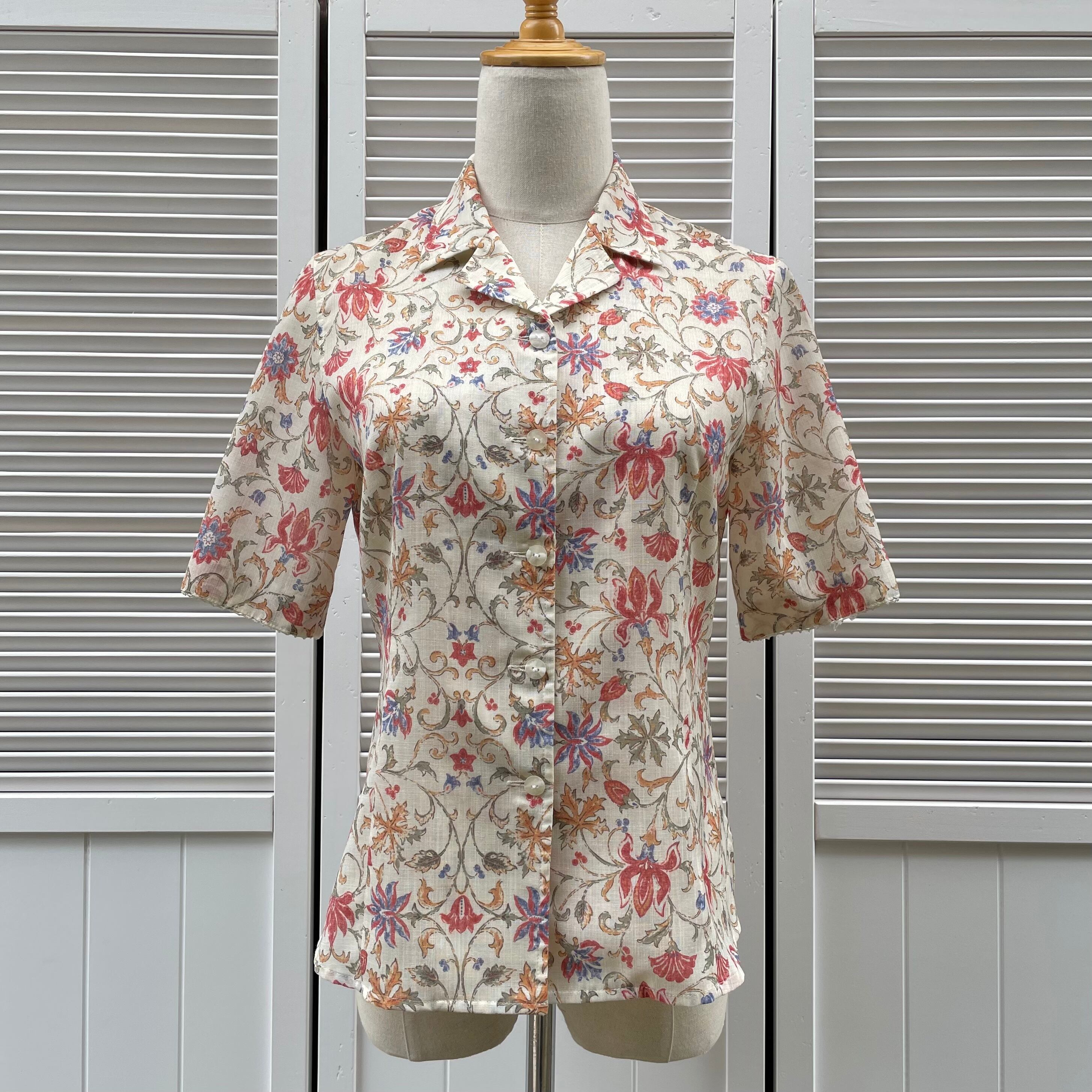 linen blend arabesque open collar shirt 〈レトロ古着 麻混アラベスク柄開襟シャツ 柄シャツ〉