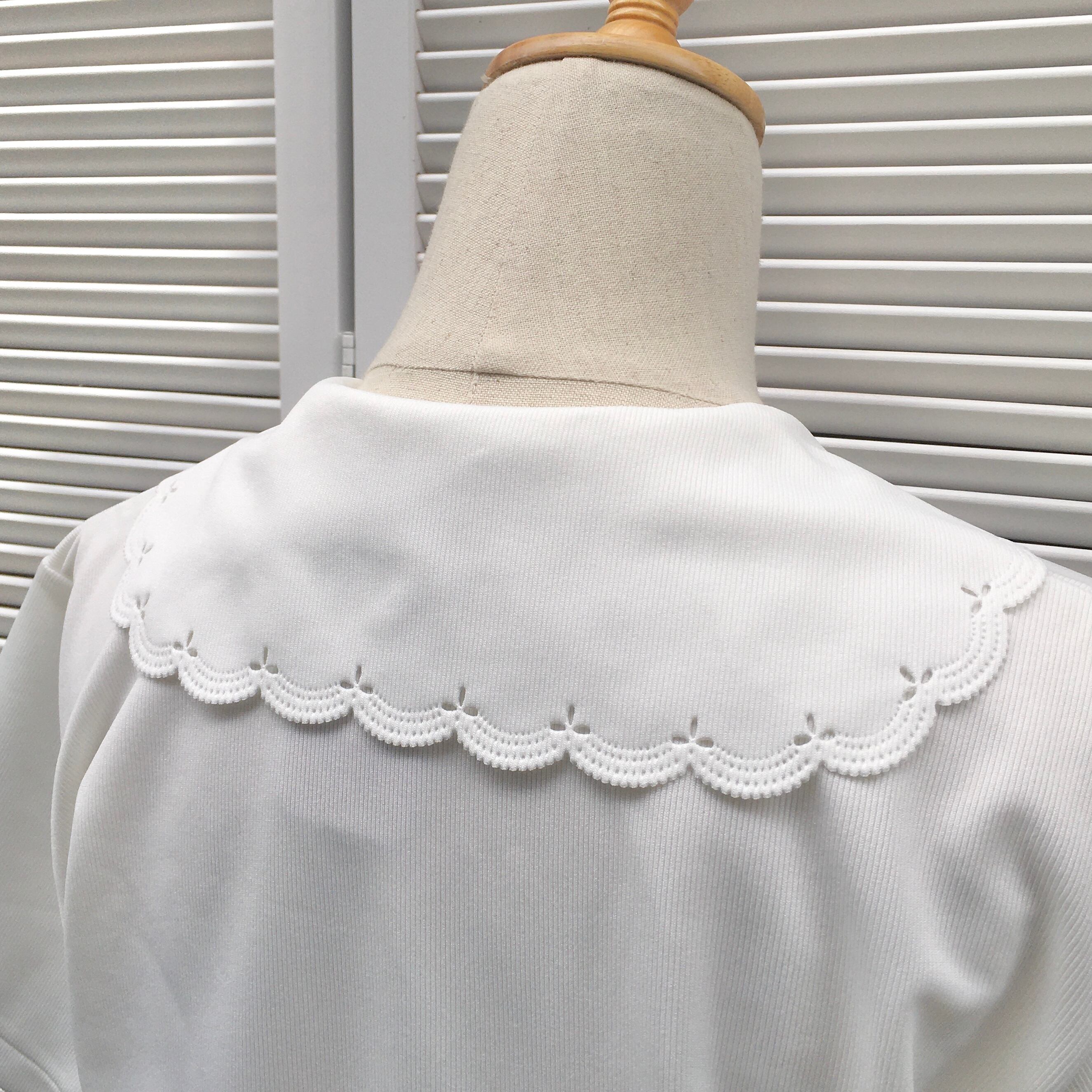 パンチングにスカラップのデザインがアクセントになったセーラーカラーブラウス