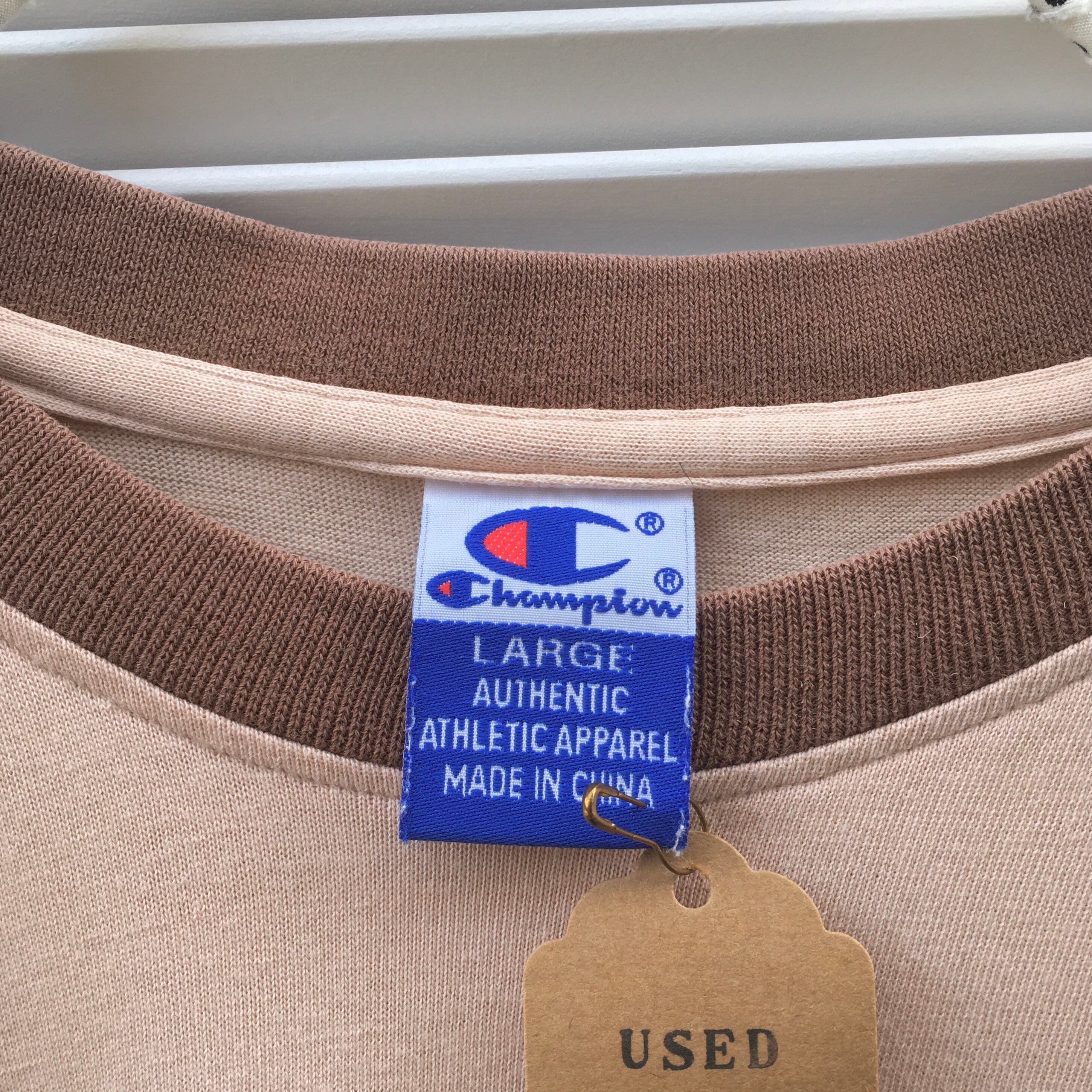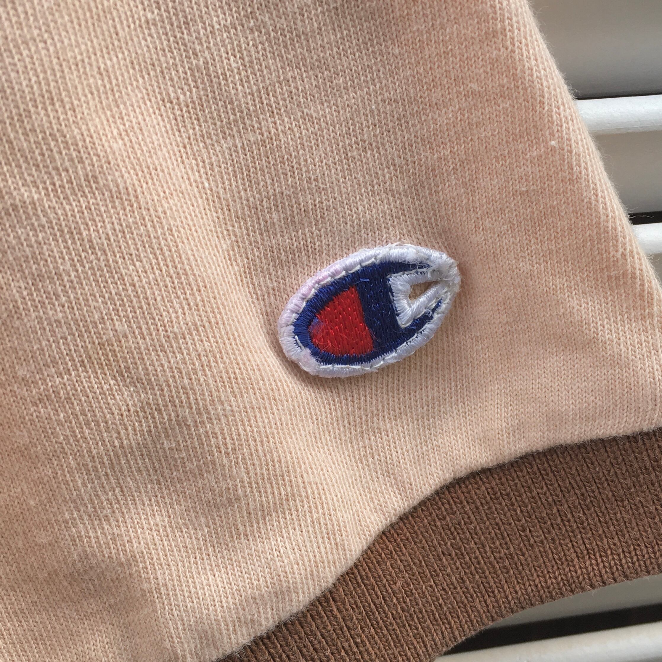 大きなブランドロゴが目を引くチャンピオンのリンガーTシャツ