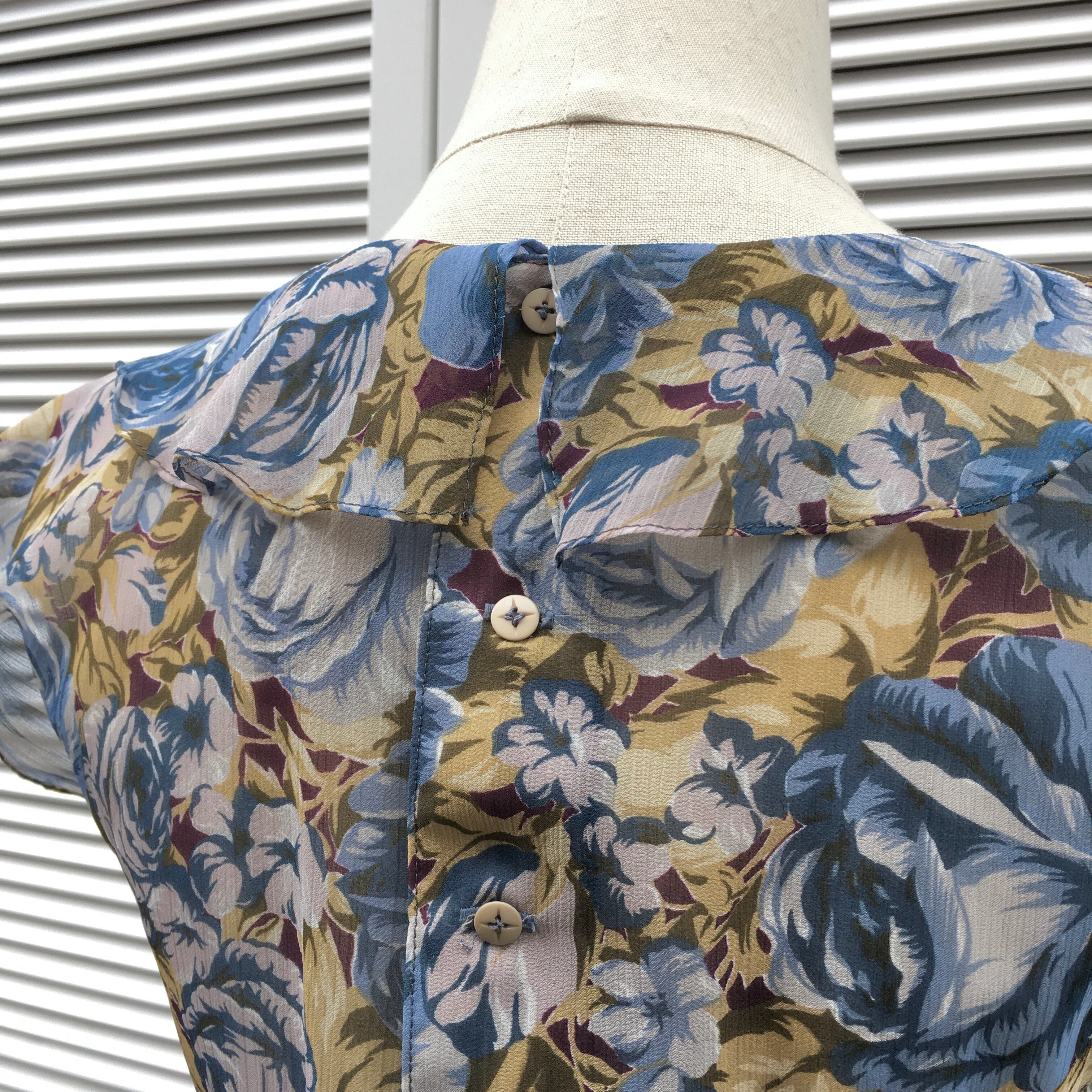 french sleeve rose dress〈レトロ古着 フレンチスリーブ薔薇柄ワンピース 花柄〉