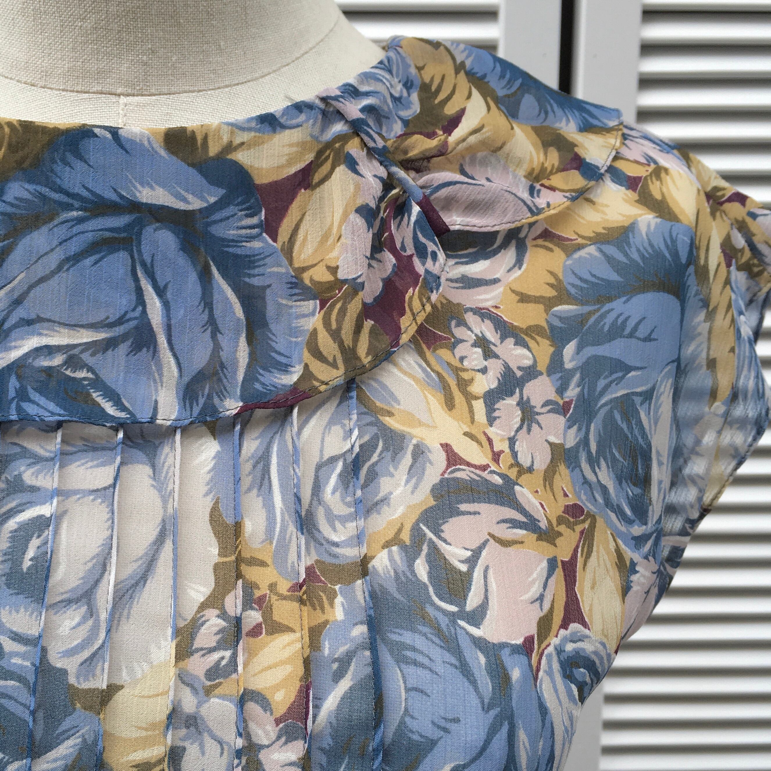 ブルー系のカラーと透け感のある素材が涼しげな薔薇柄のワンピース