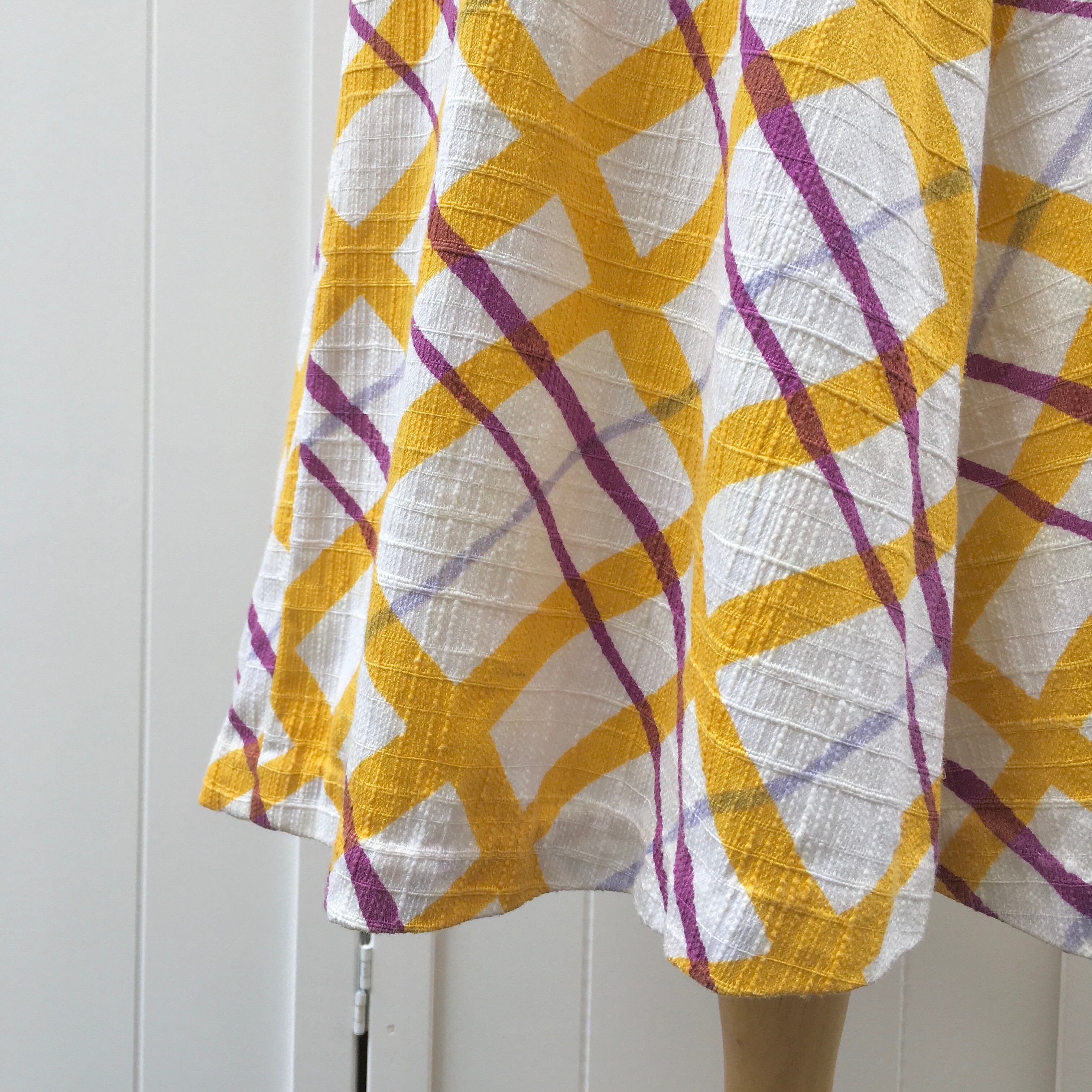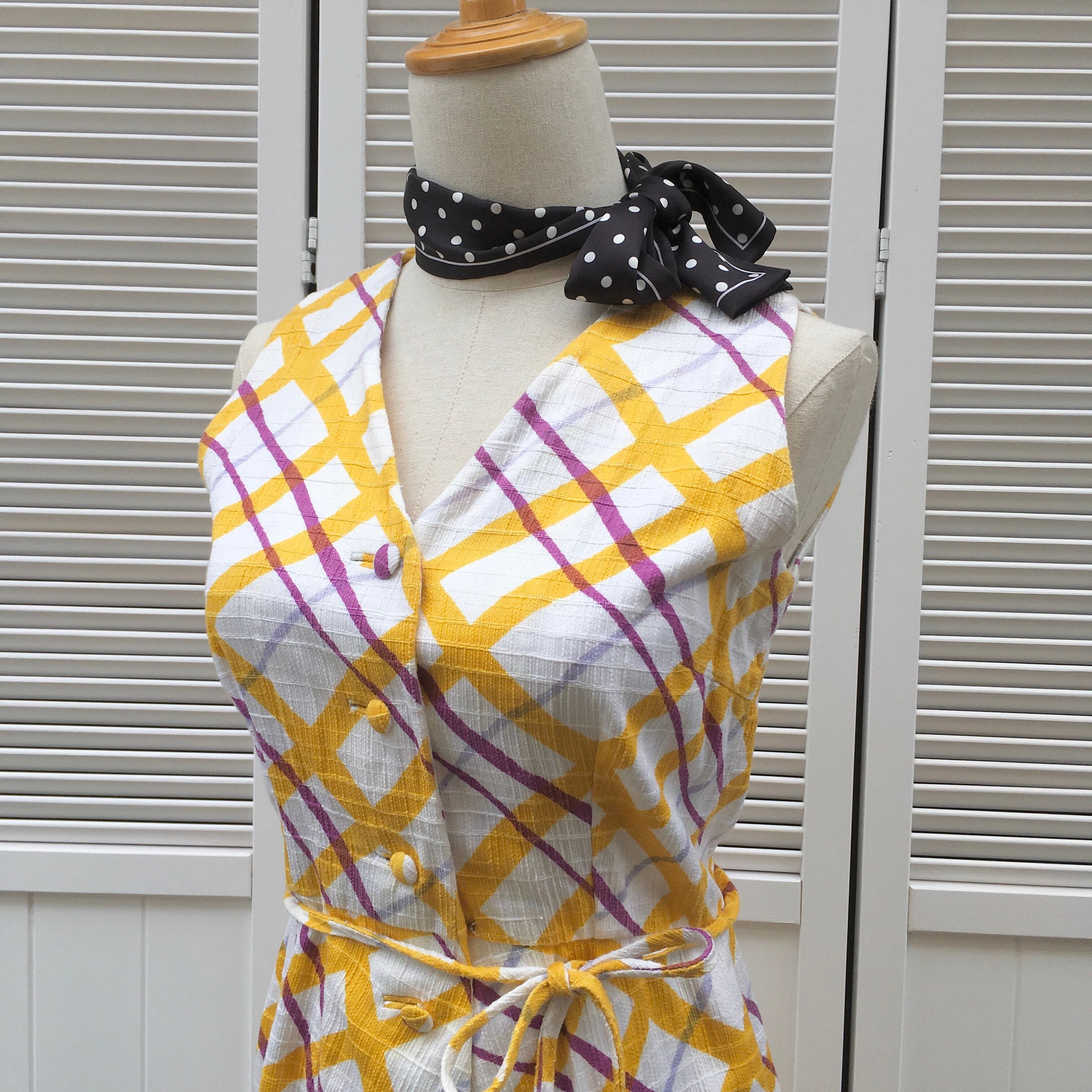 イエローとパープルの色使い可愛いチェック柄ワンピース