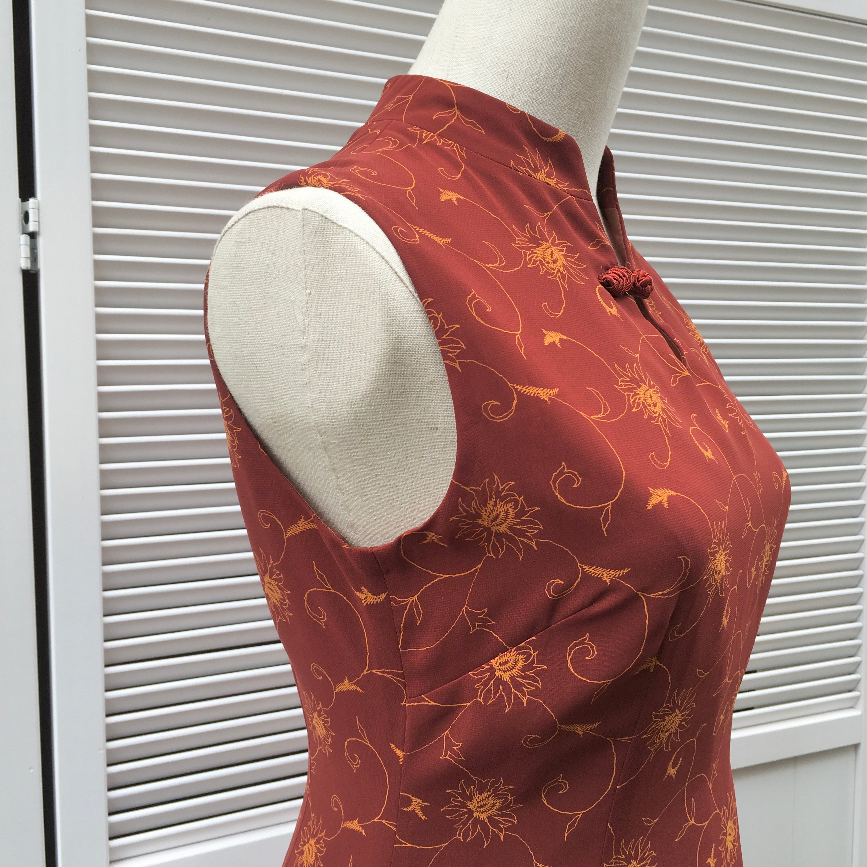 胸元のチャイナボタンがアクセントになったチャイナドレステイストのワンピース