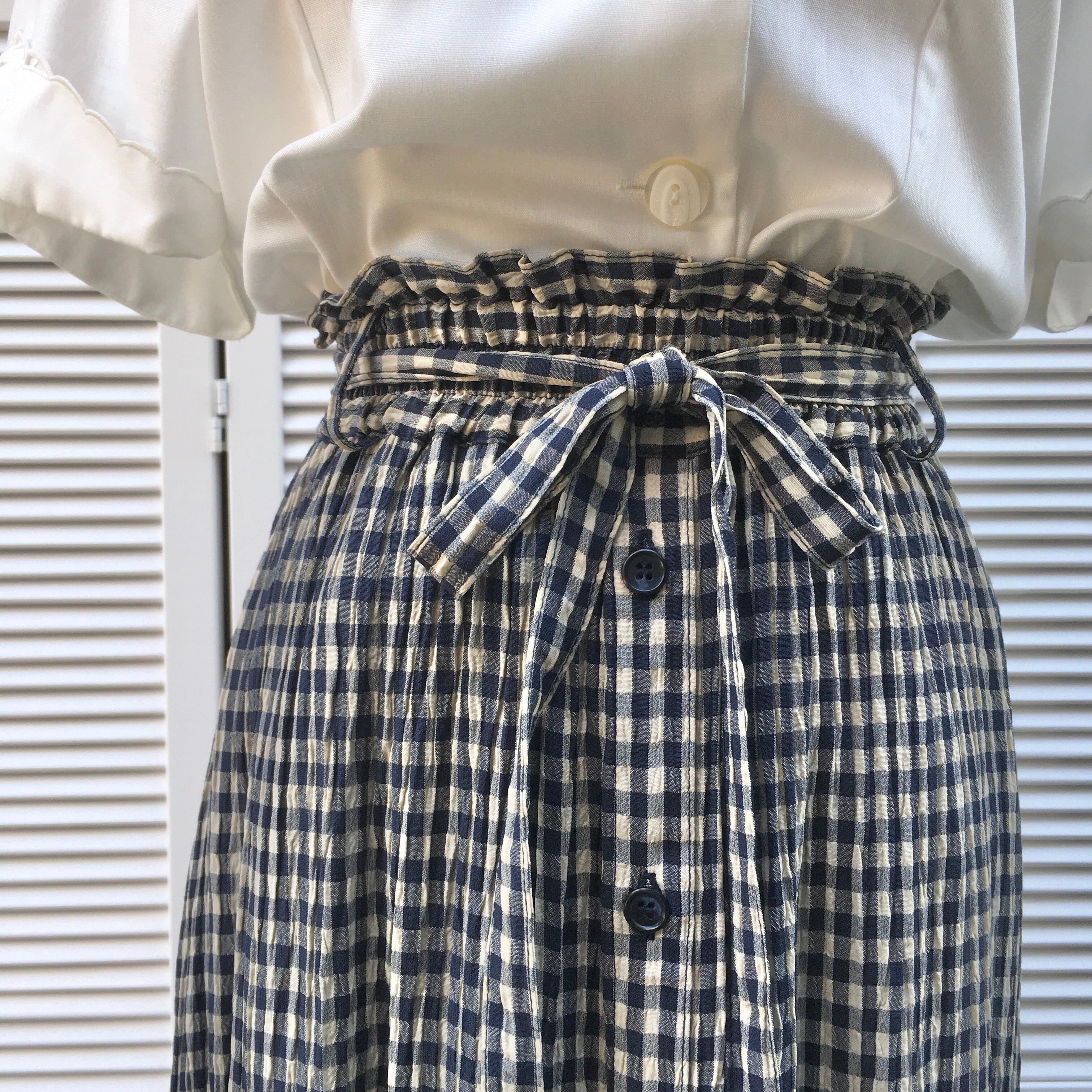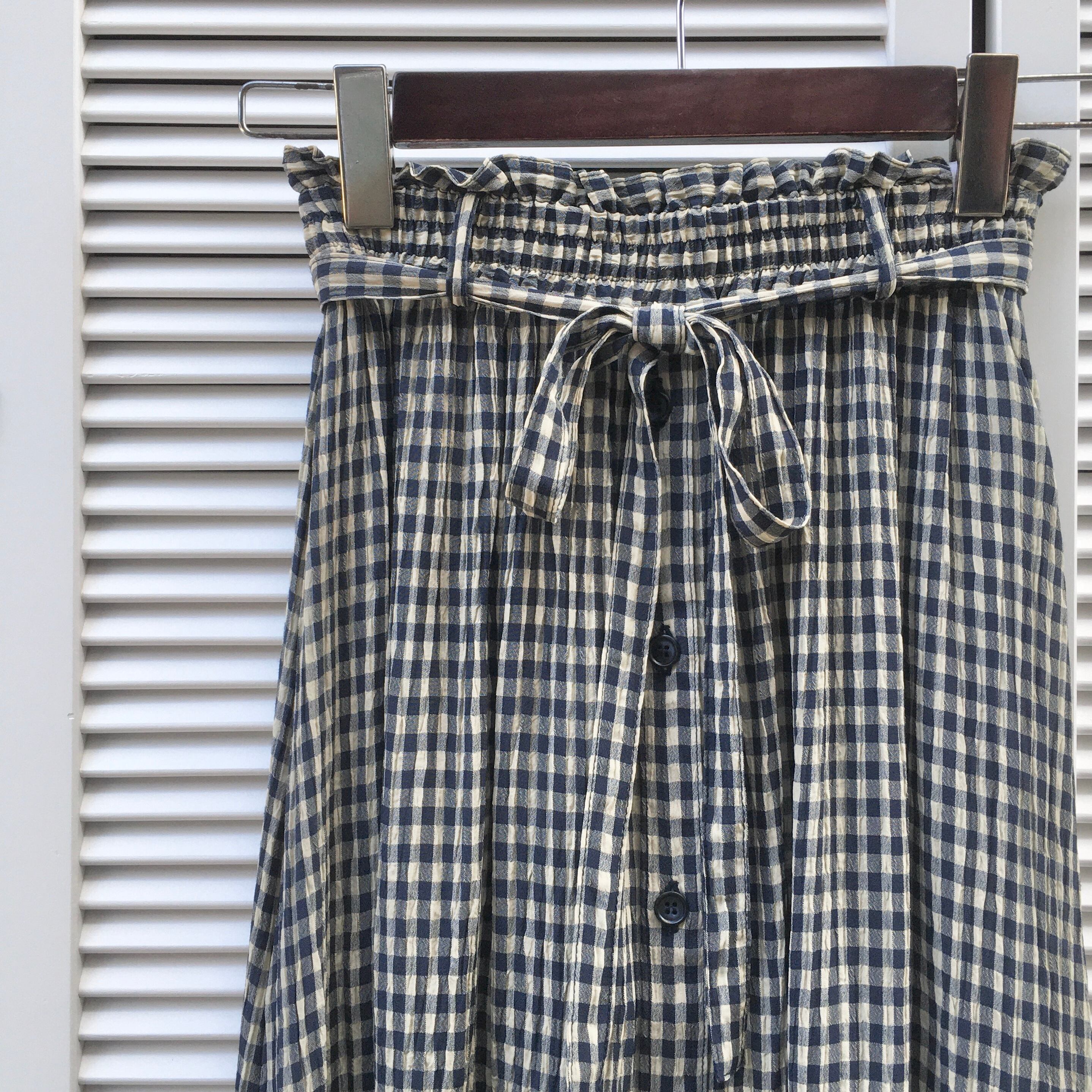 ナチュラルな素材感やネイビー×ベージュが落ち着ついた印象のギンガムチェックスカート