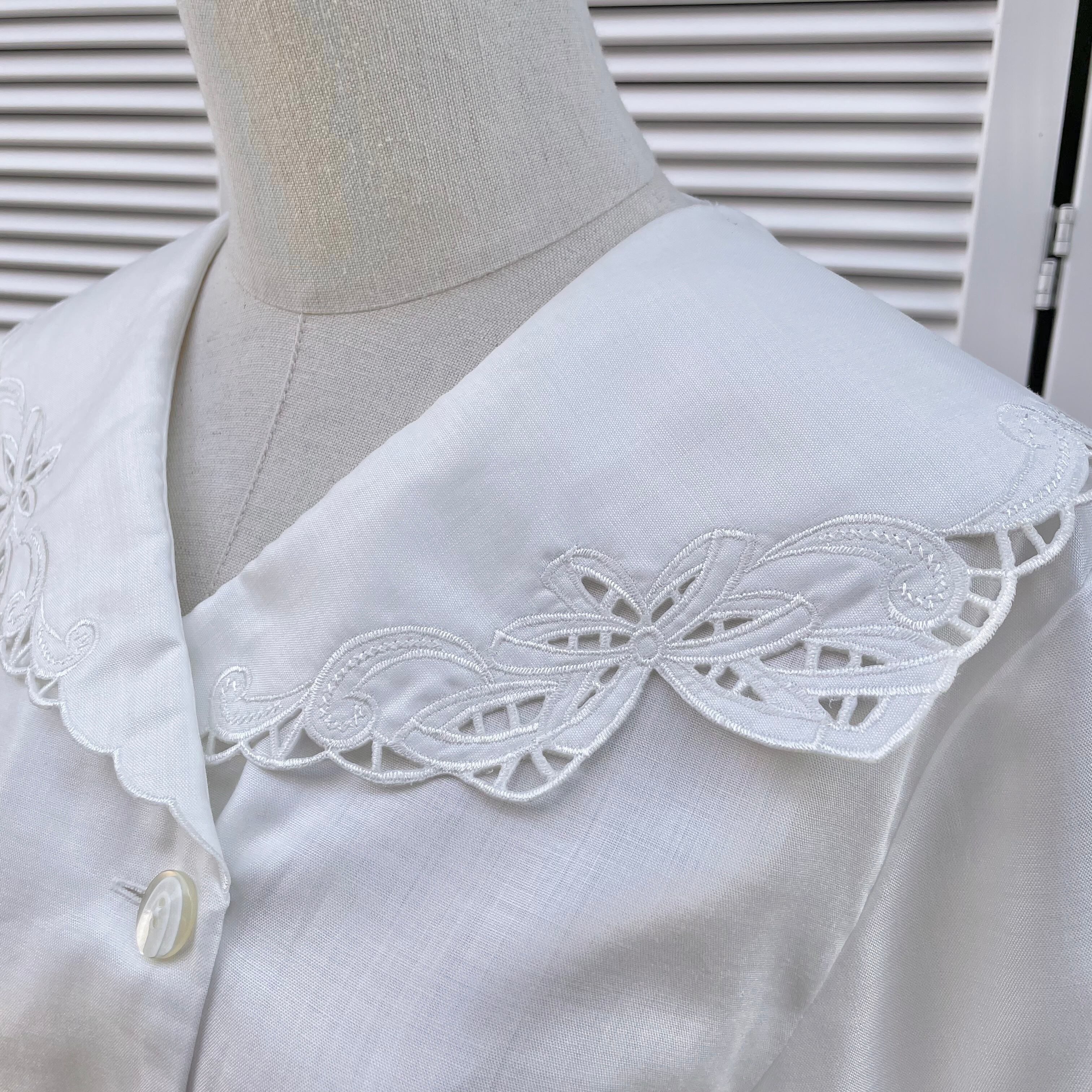 sailor collar embroidered white blouse〈レトロ古着 セーラーカラー刺繍ホワイトブラウス〉