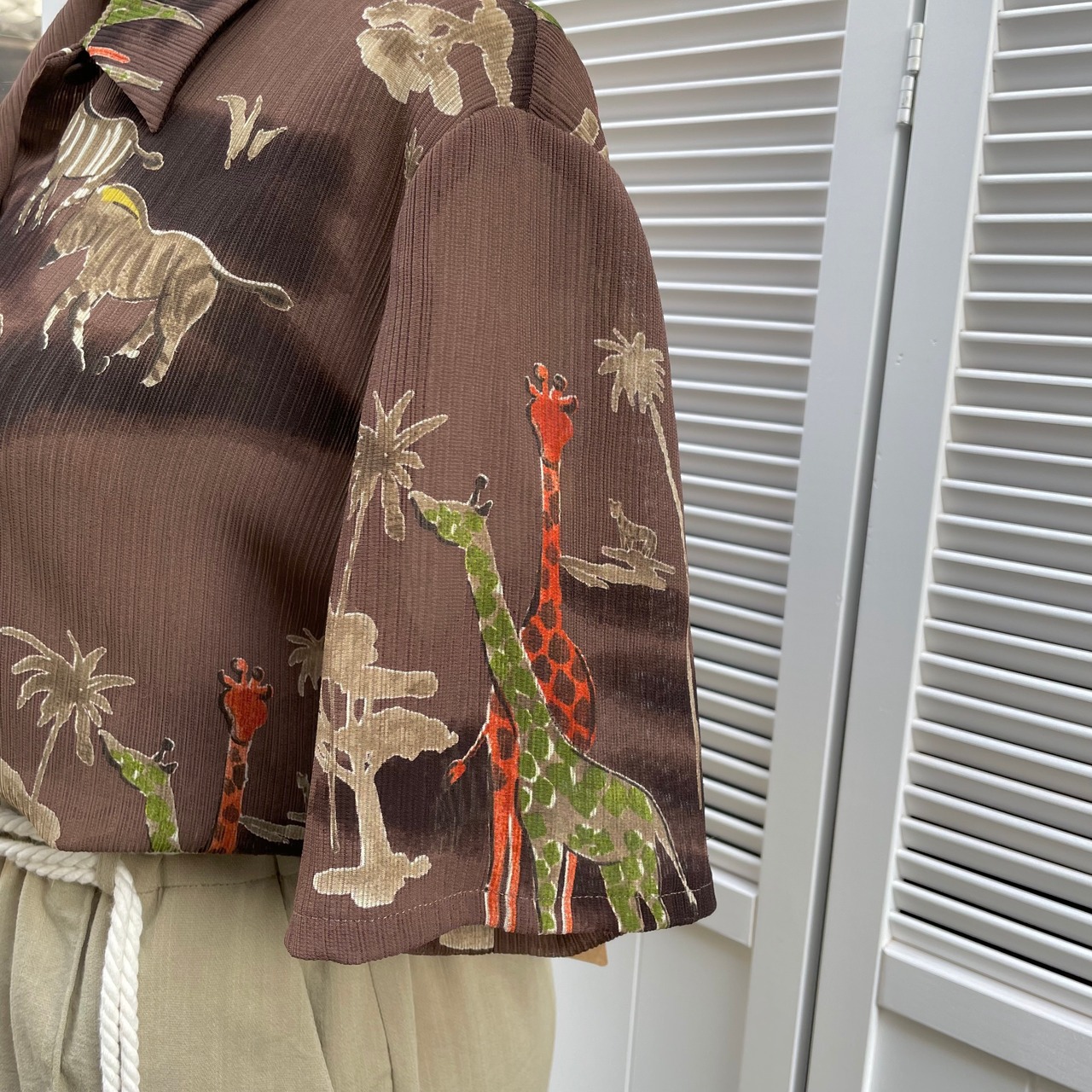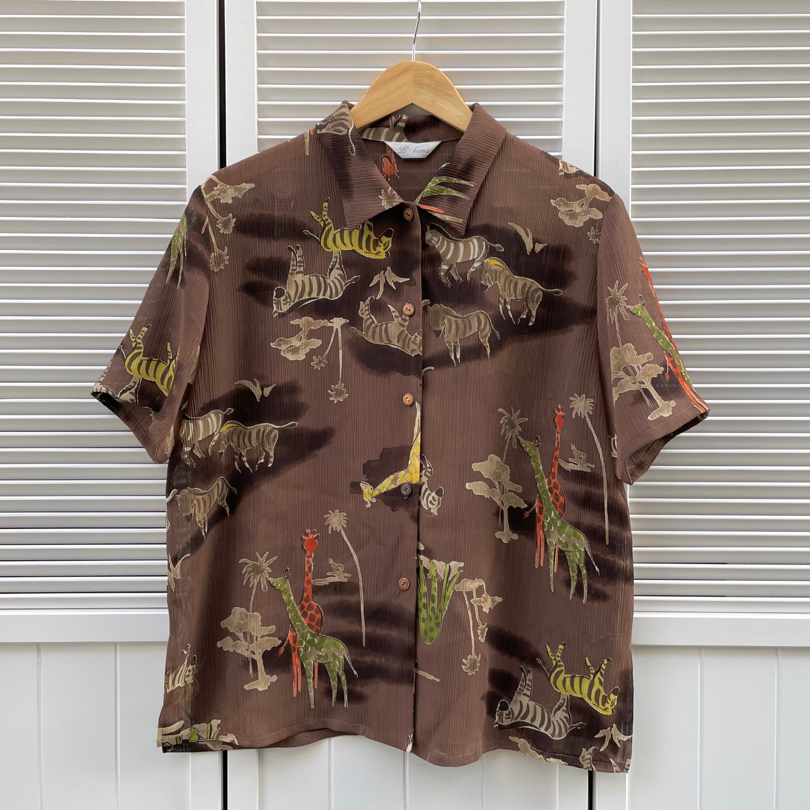 safari pattern shirt〈レトロ古着 サファリ柄シャツ キリン シマウマ〉