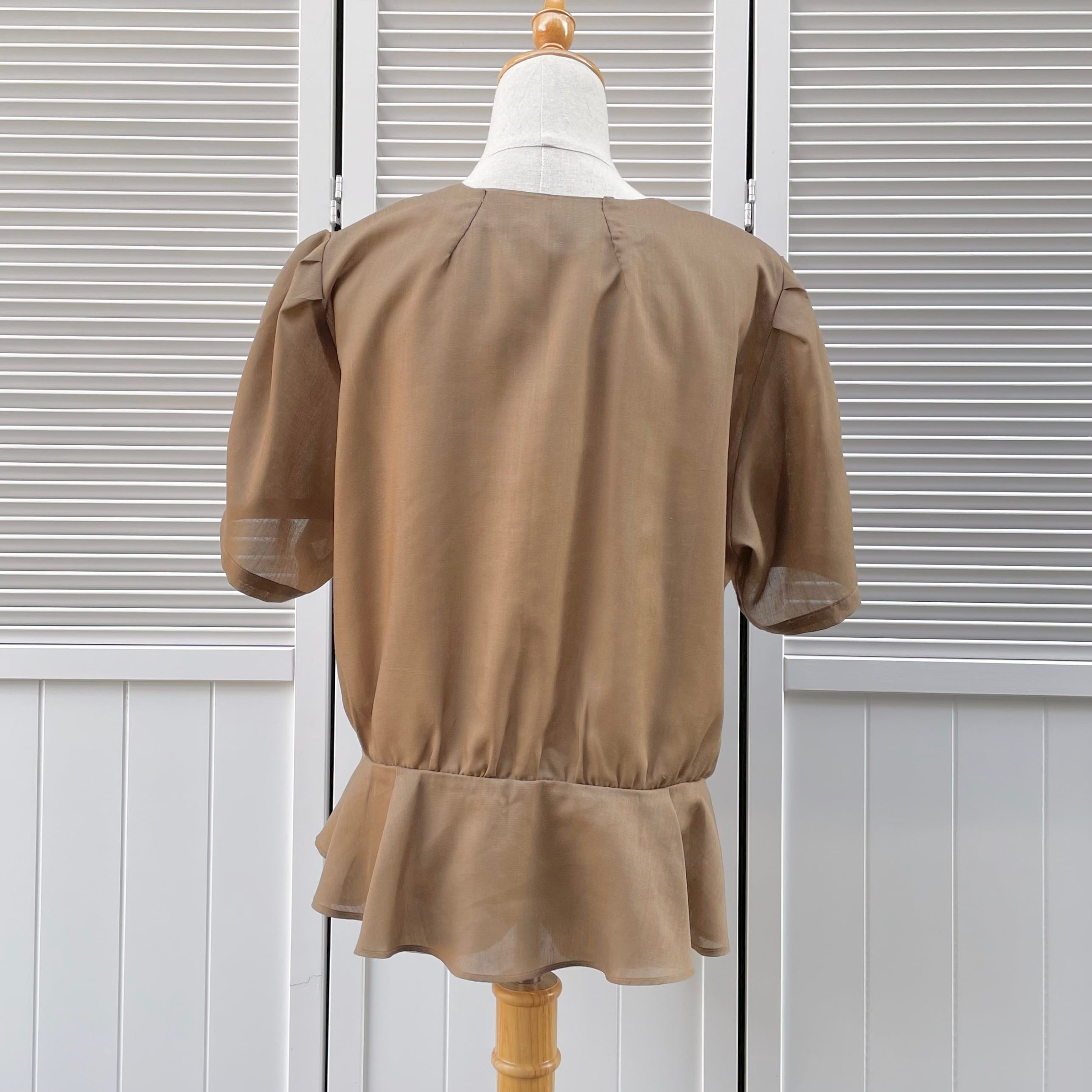 embroidery peplum blouse 〈レトロ古着 麻混刺繍ペプラムブラウス ブラウンベージュ〉