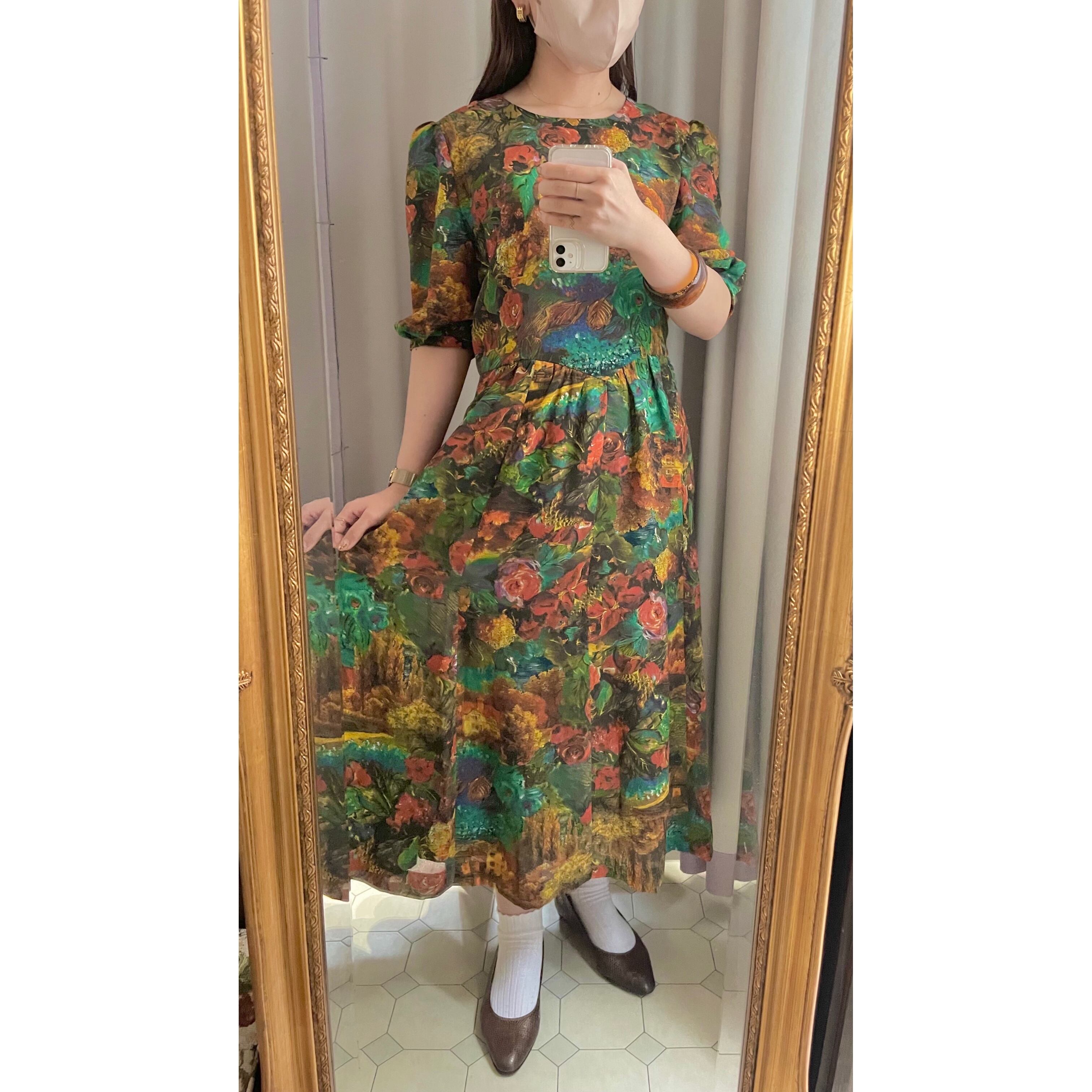 art motif classical dress〈レトロ古着 絵画柄クラシカルワンピース〉