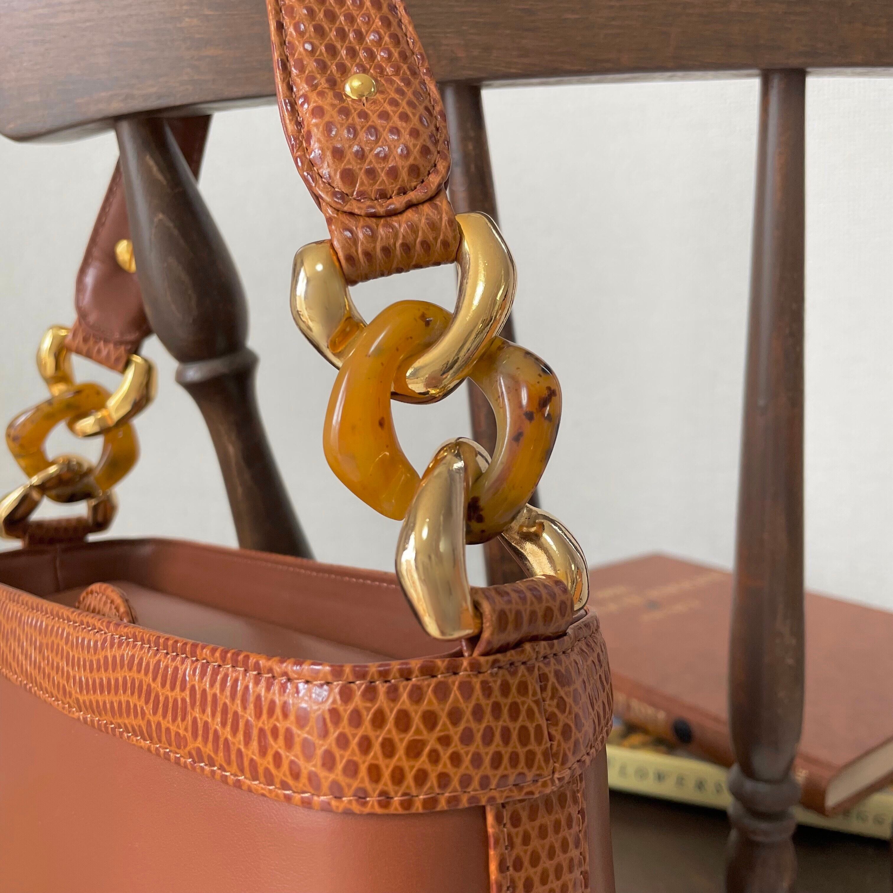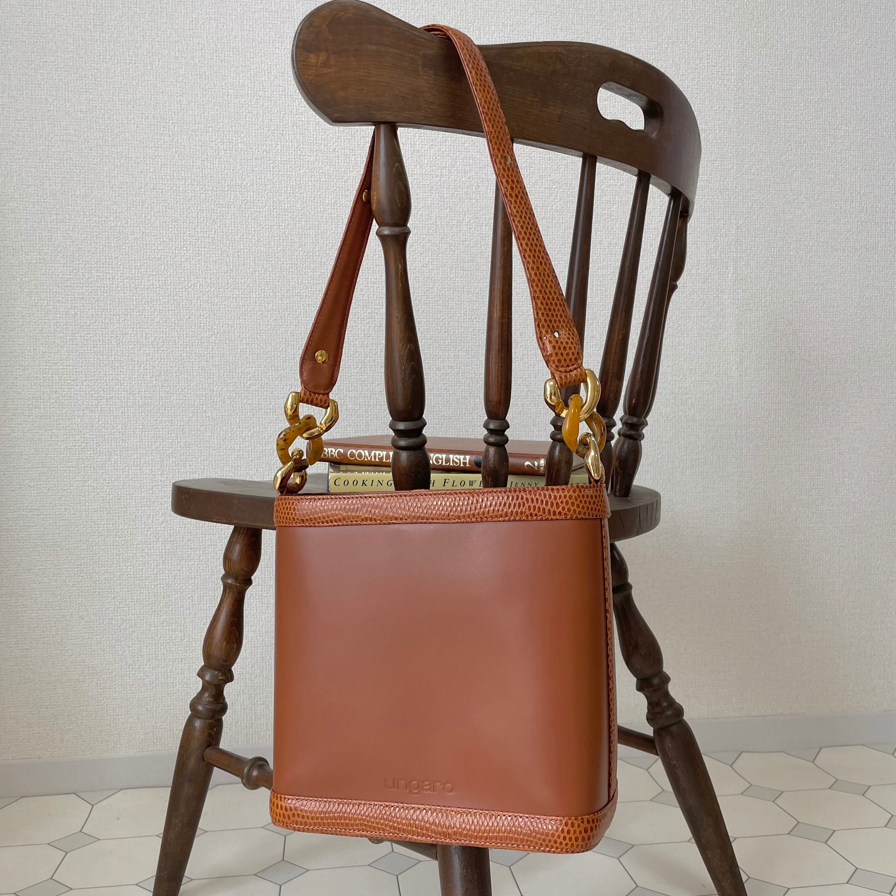 ungaro chain design handbag〈レトロ鞄 ウンガロ チェーンデザインハンドバッグ 型押し〉