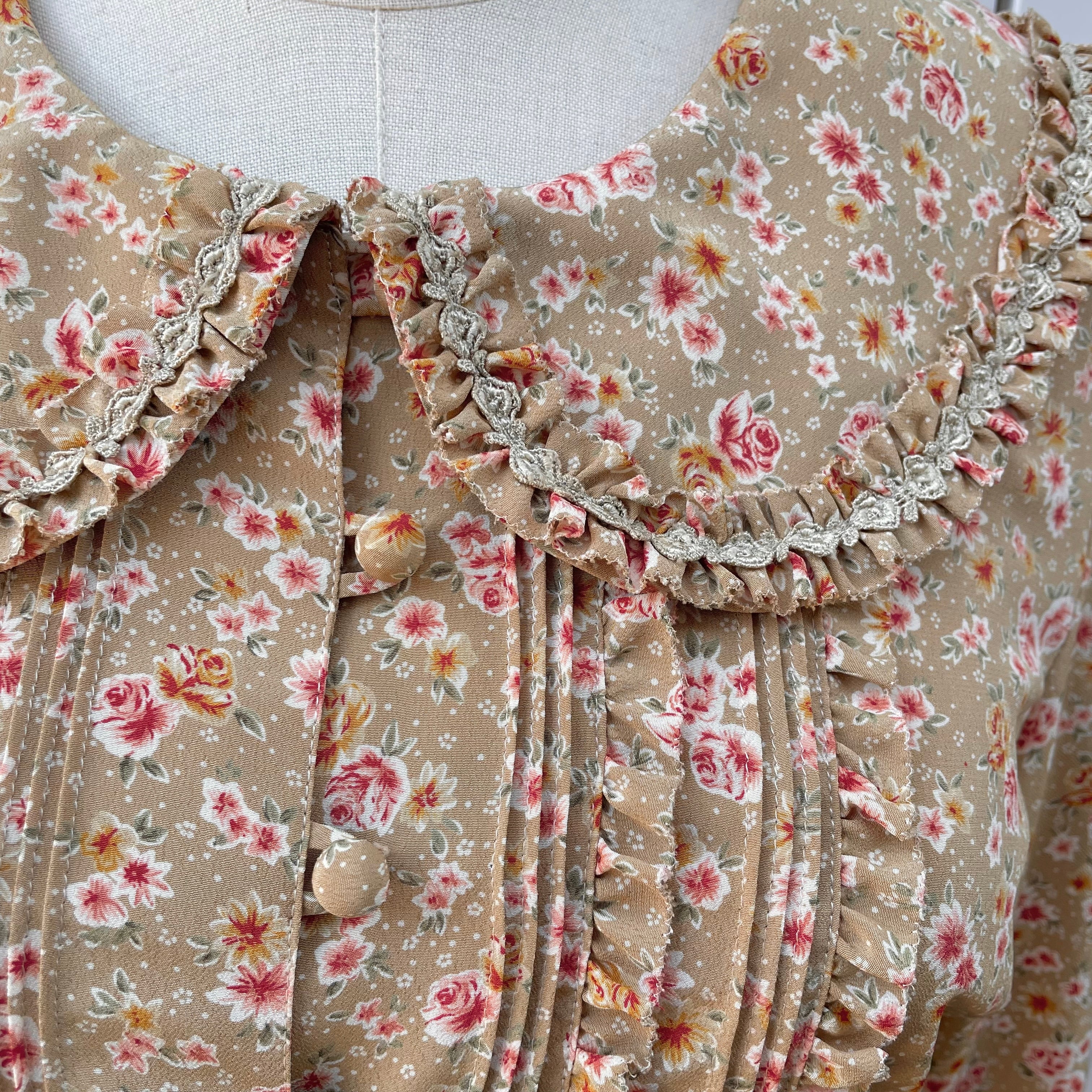 big collar floral frill blouse 〈レトロ古着 ビッグカラー花柄フリルブラウス〉