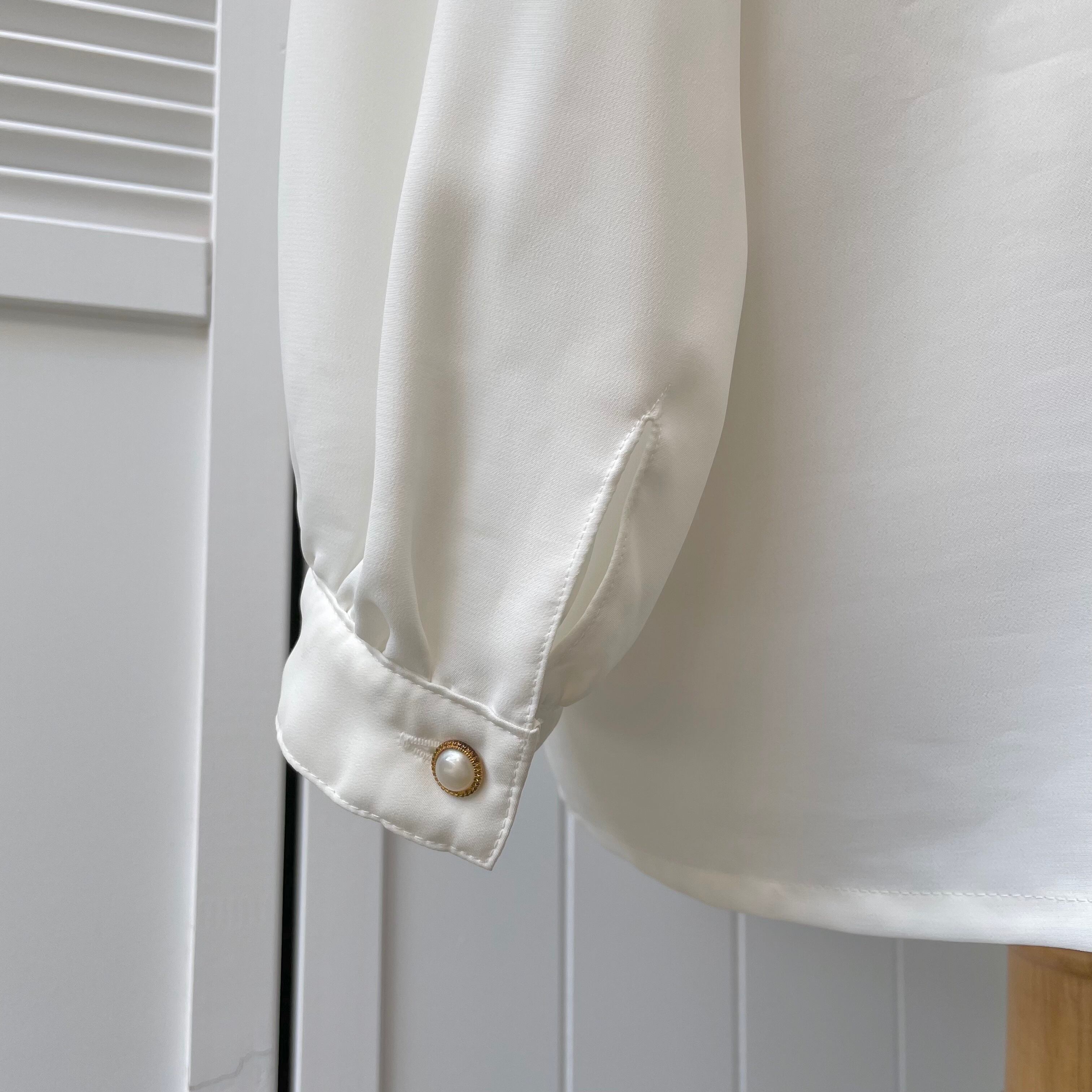 レース装飾の襟にパール調のボタンがさりげない可愛いさのホワイトブライス