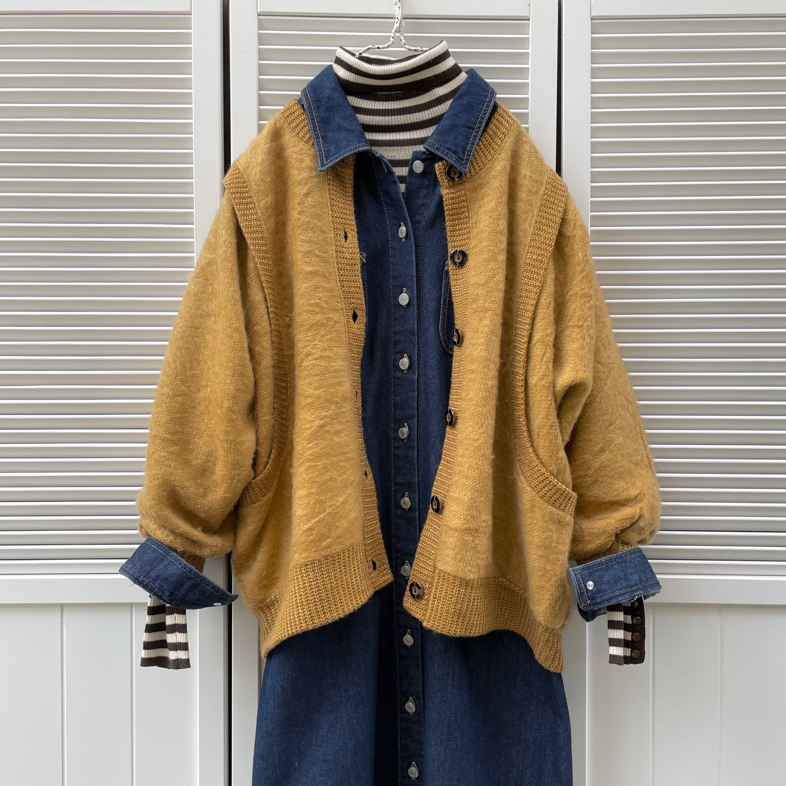 mustard dolman sleeve cardigan〈レトロ古着 マスタードドルマンスリーブカーディガン〉