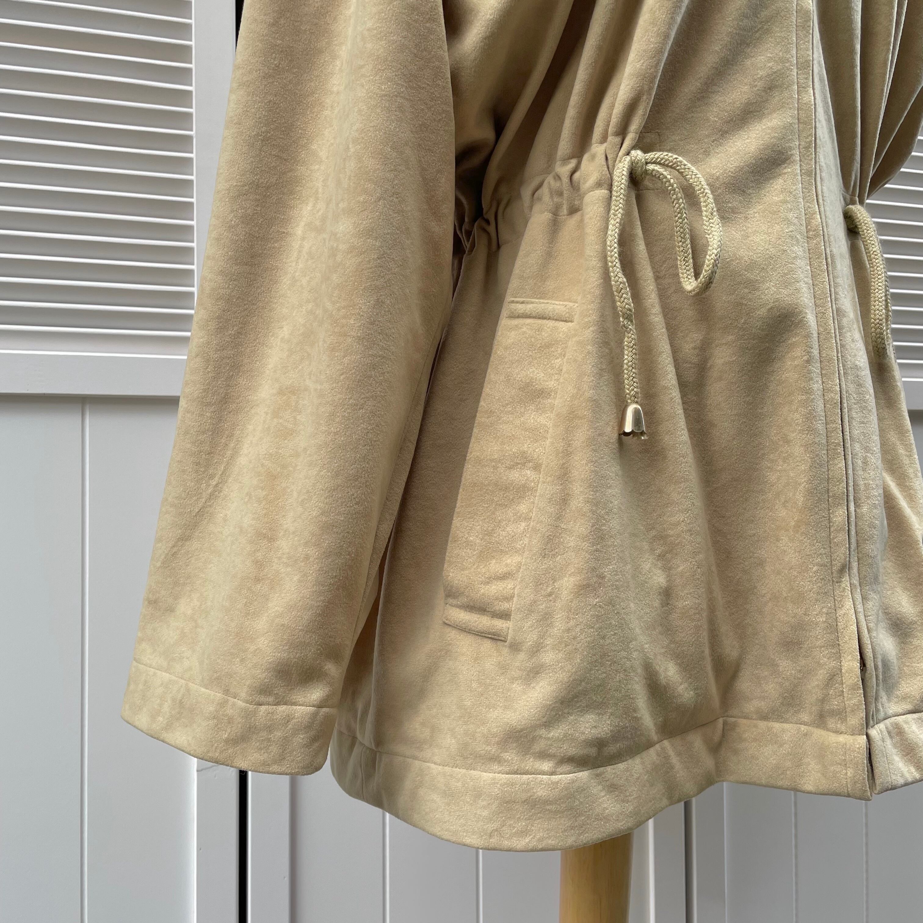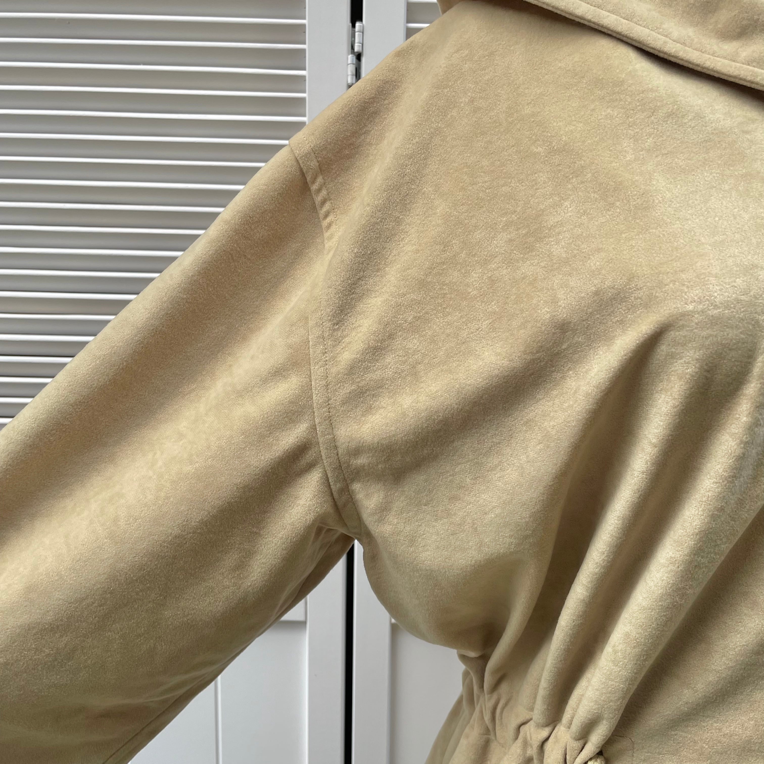 おしりが隠れる丈感でありながら、ウエストマークできるドロストデザインで低身長の方にも着ていただきやすい一着