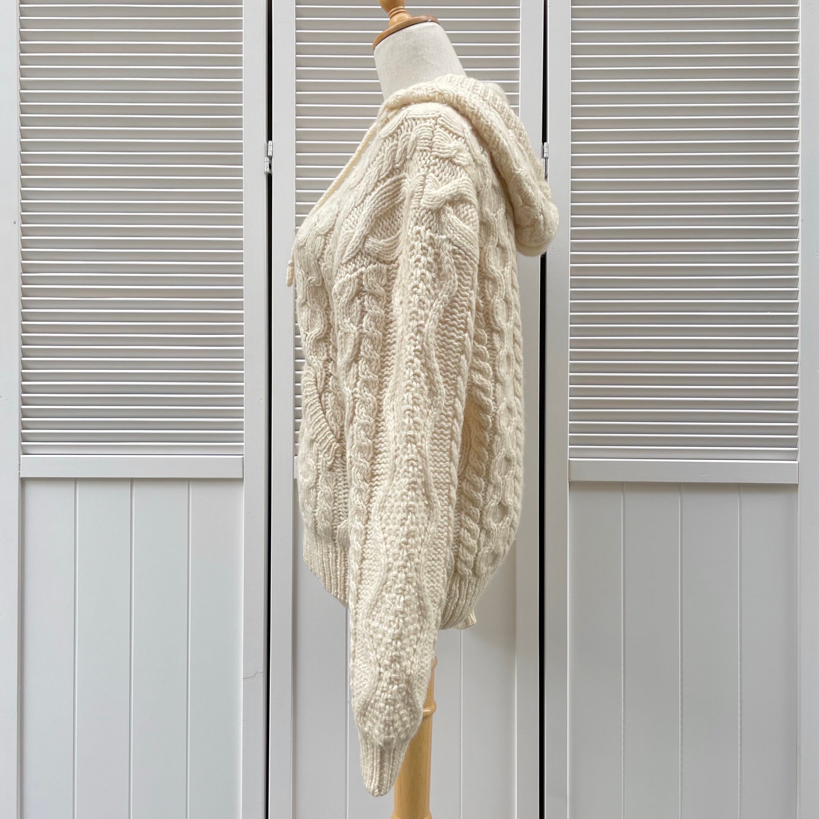alan knit zip up hoodie〈レトロ古着 アランニットジップアップパーカー フィッシャーマンニット フーディー フード付き〉