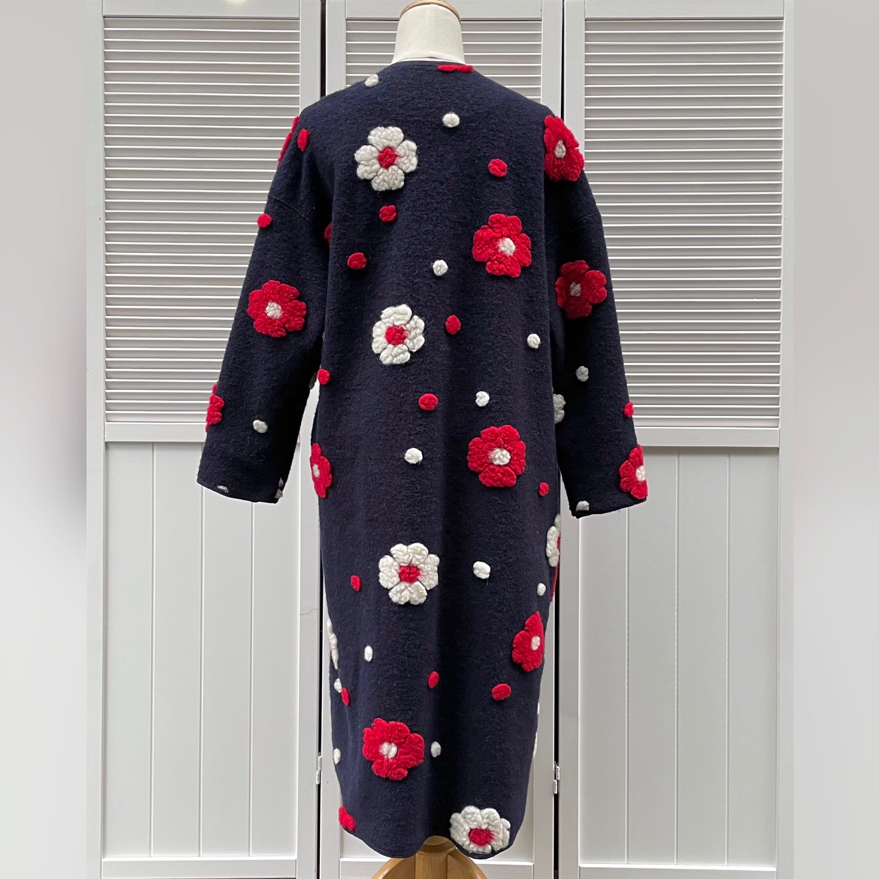 全身にあしらわれたモコモコのお花とドットがポップさ満天なアウター