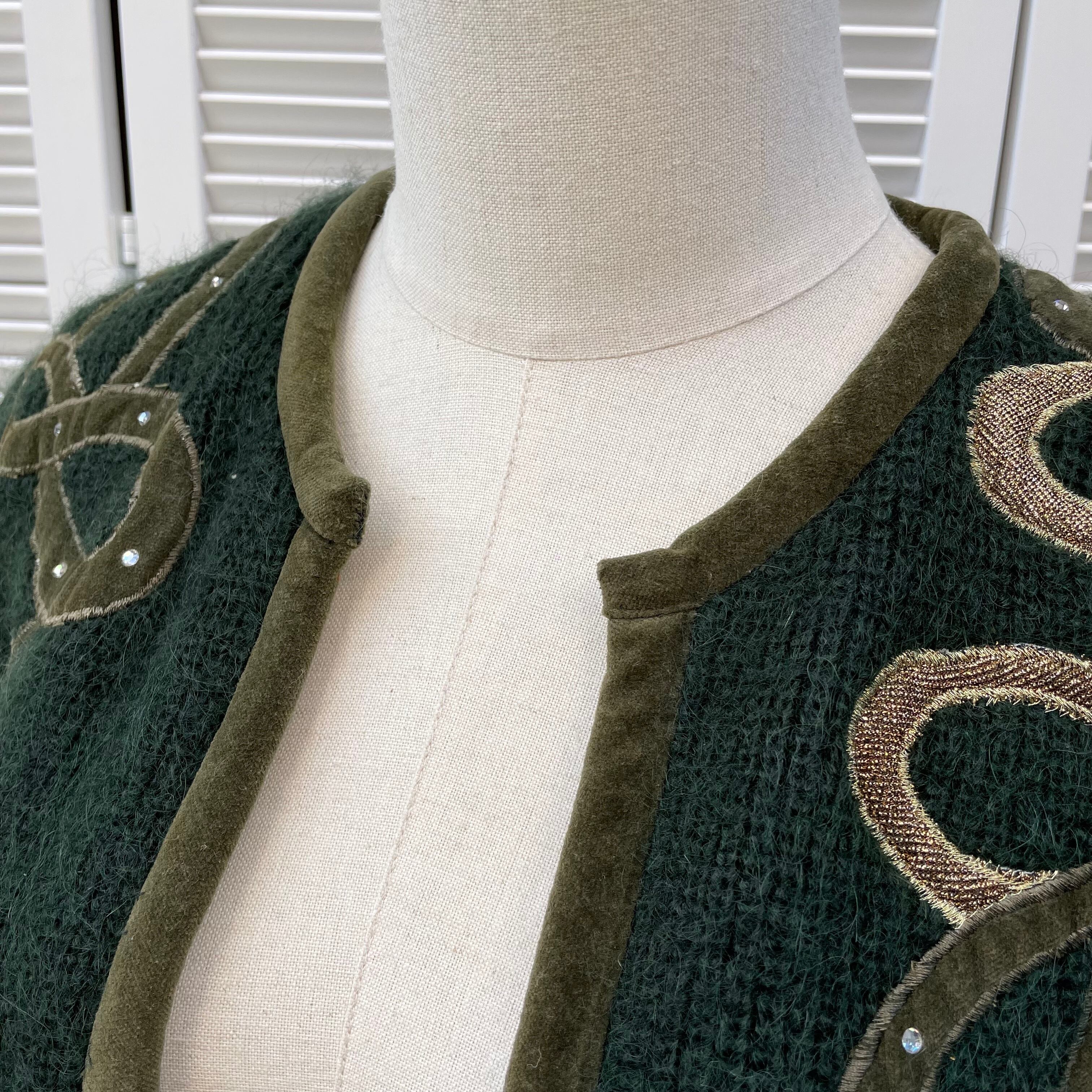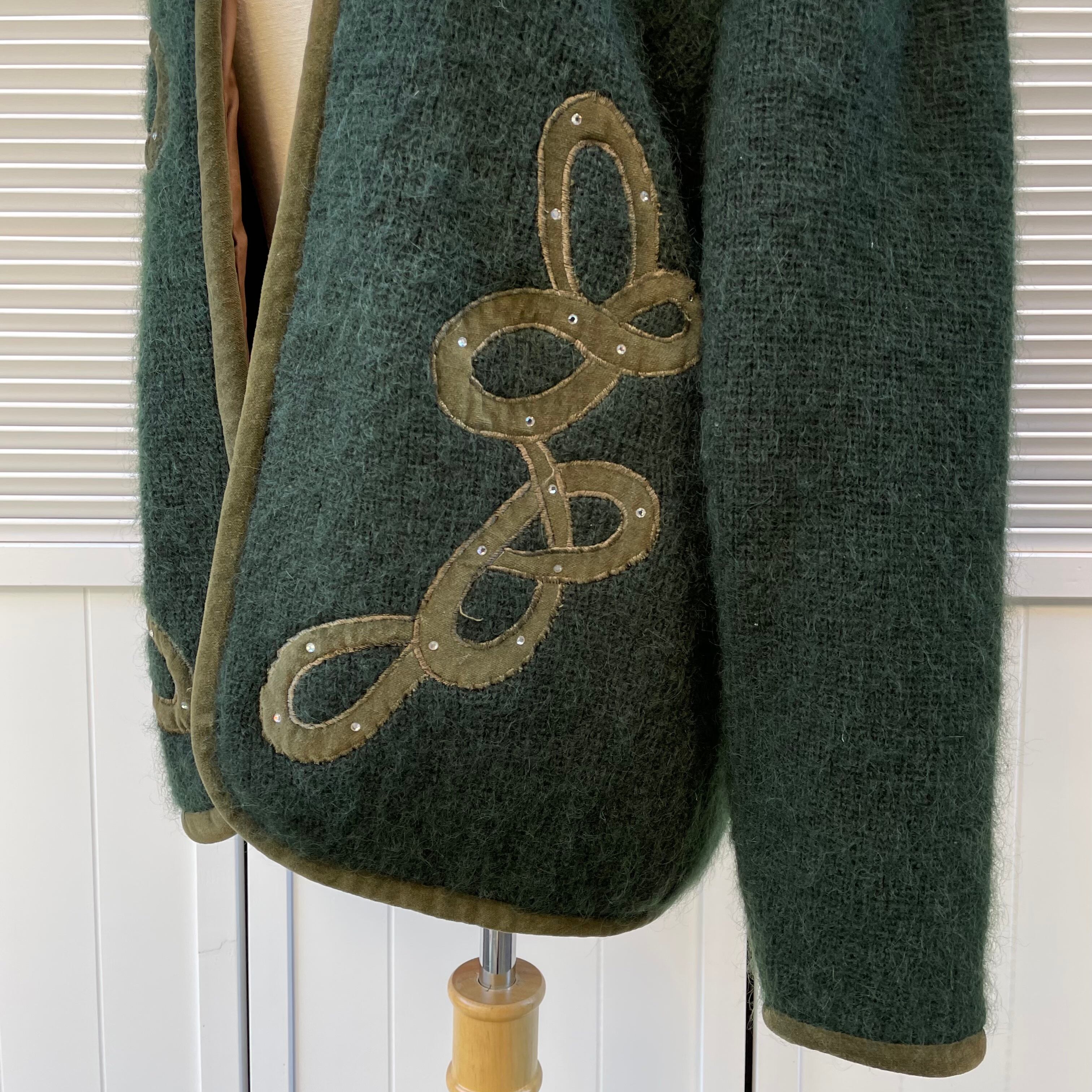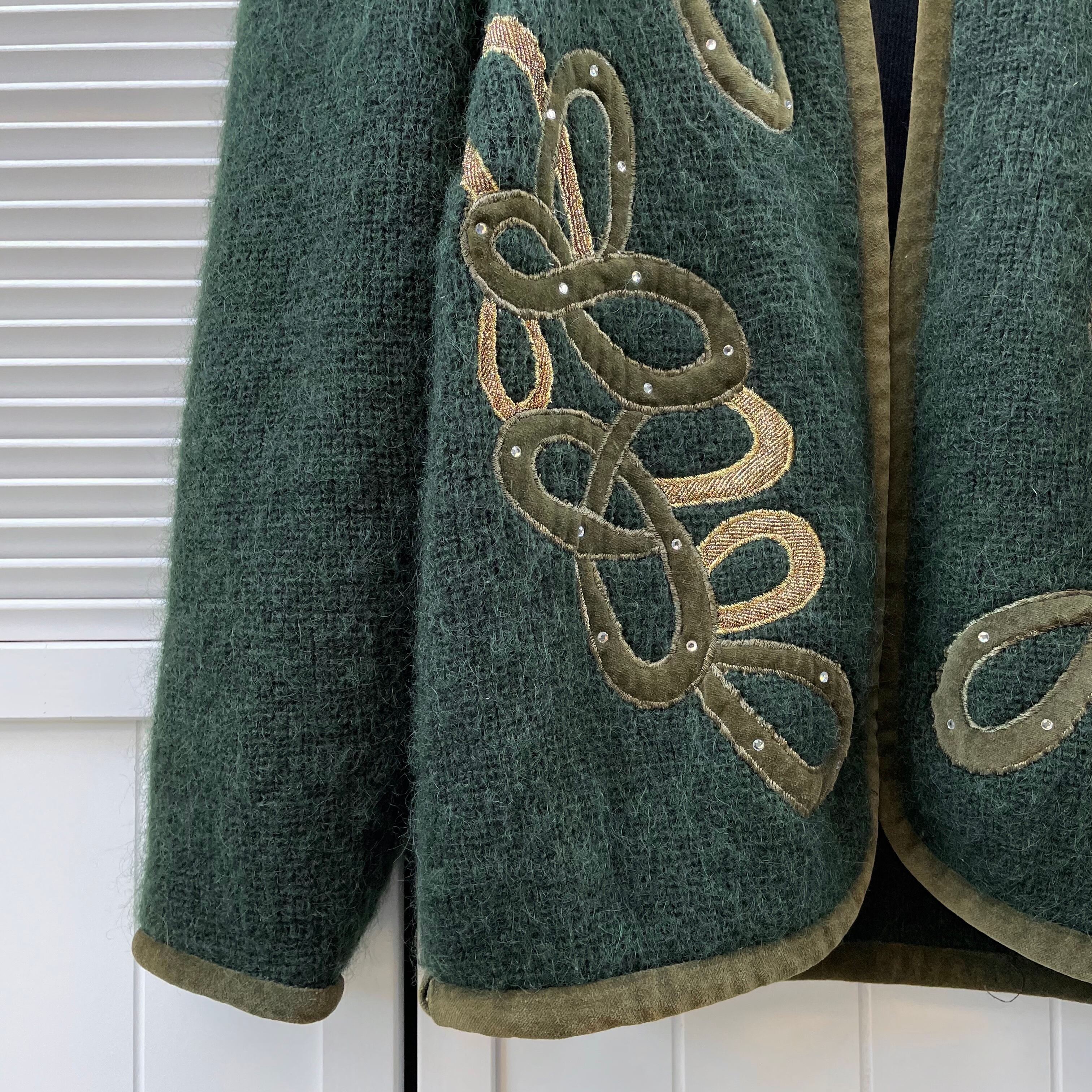 velvet piping cardigan 〈レトロ古着 ベルベットパイピングカーディガン アップリケ ラインストーン〉