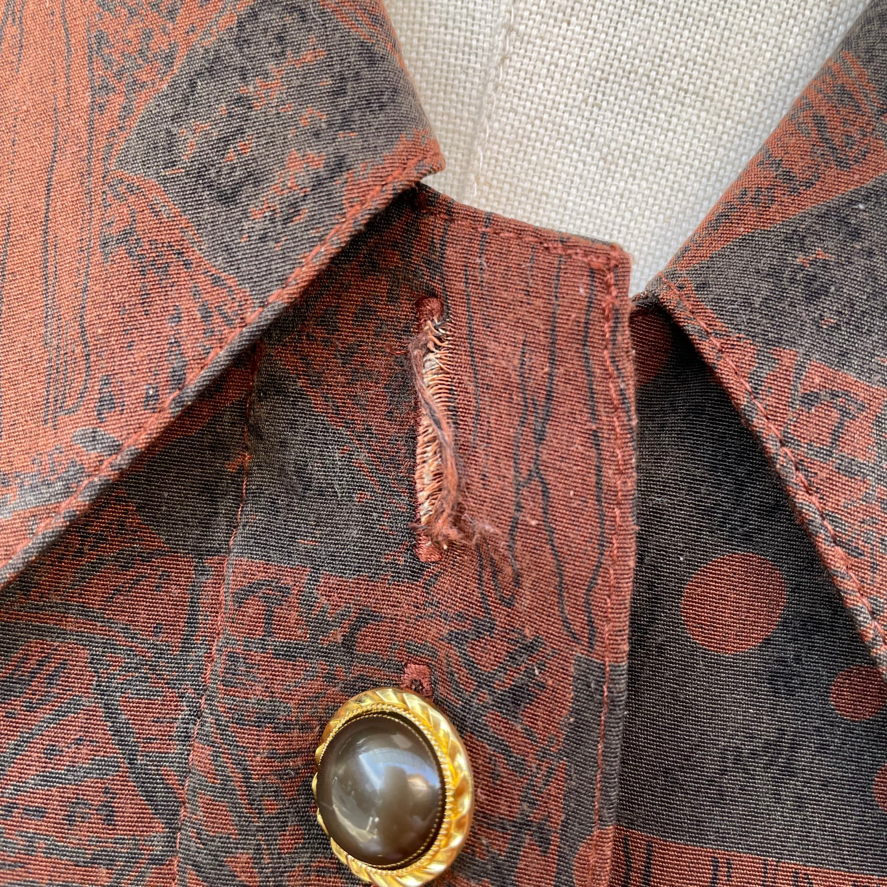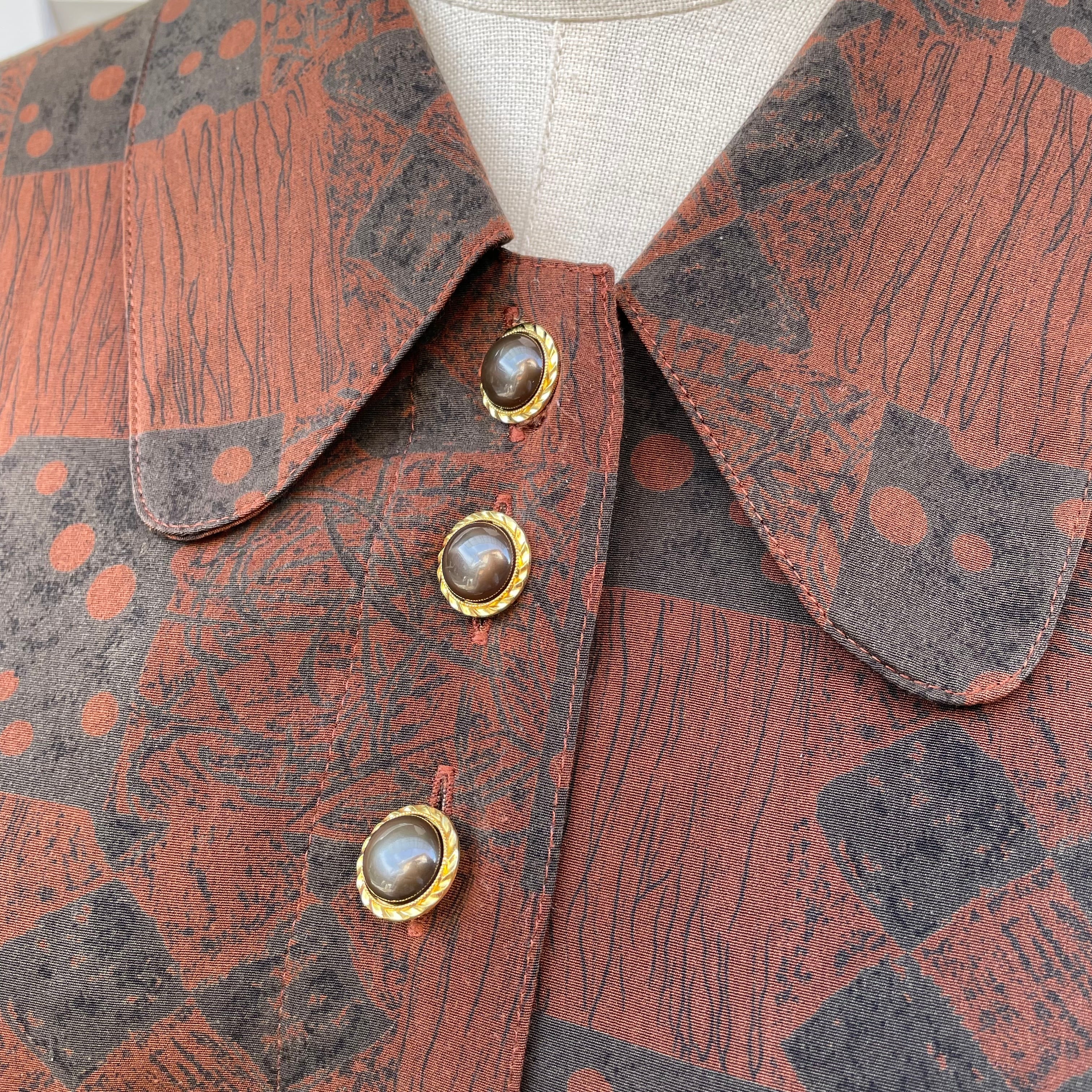 design button print shirt 〈レトロ古着 ボタンアクセント柄シャツ〉