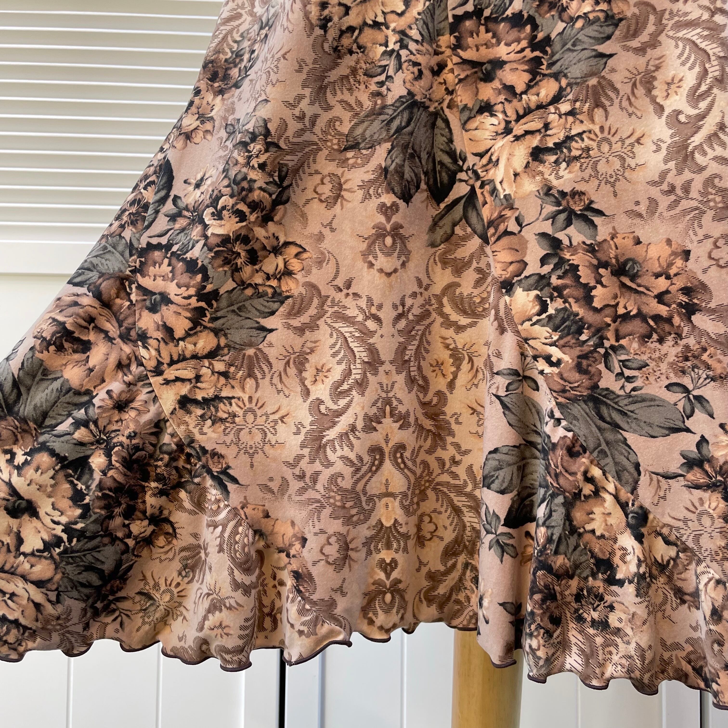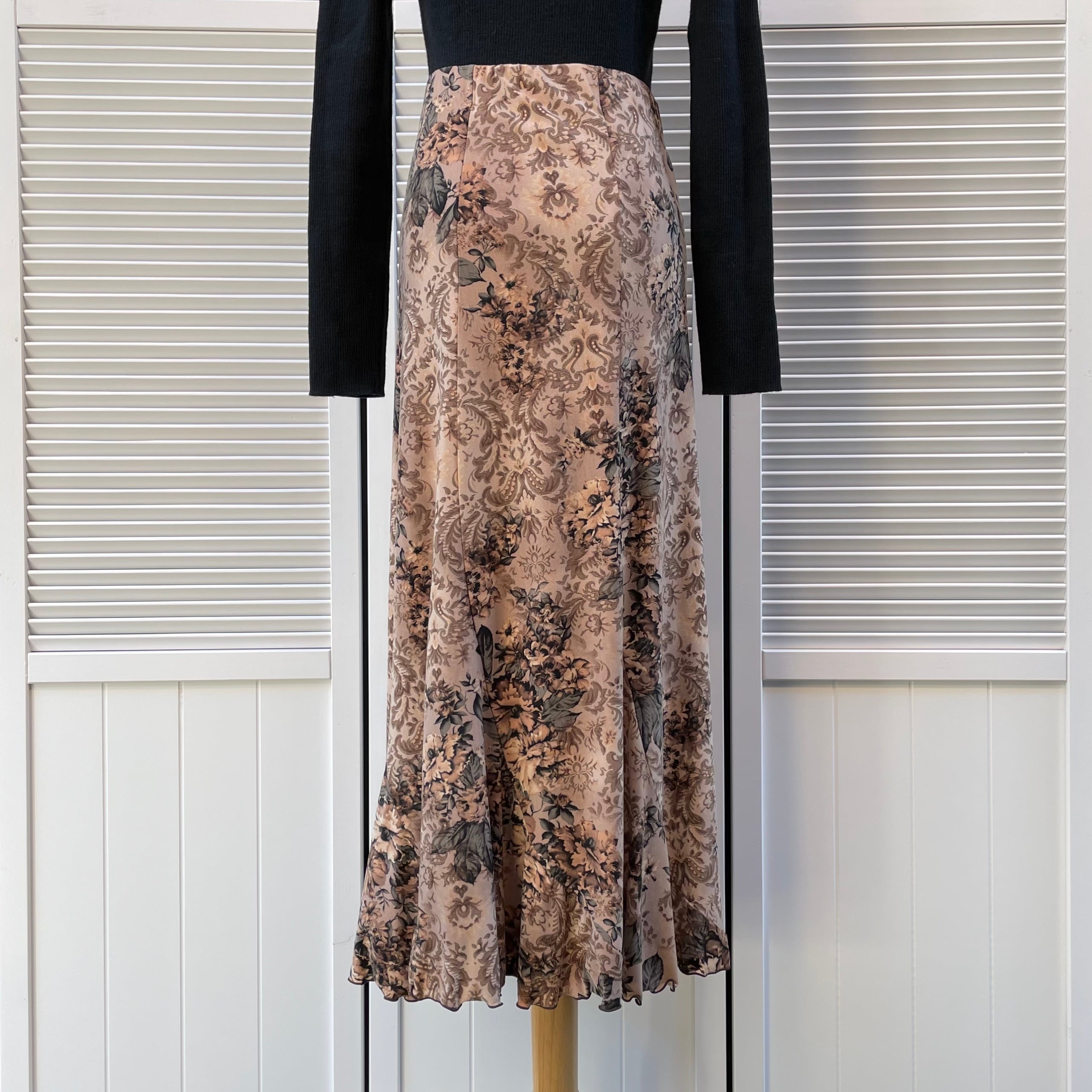 damask × floral semi-mermaid skirt〈レトロ古着 ダマスク模様 × 花柄 セミマーメイドスカート〉
