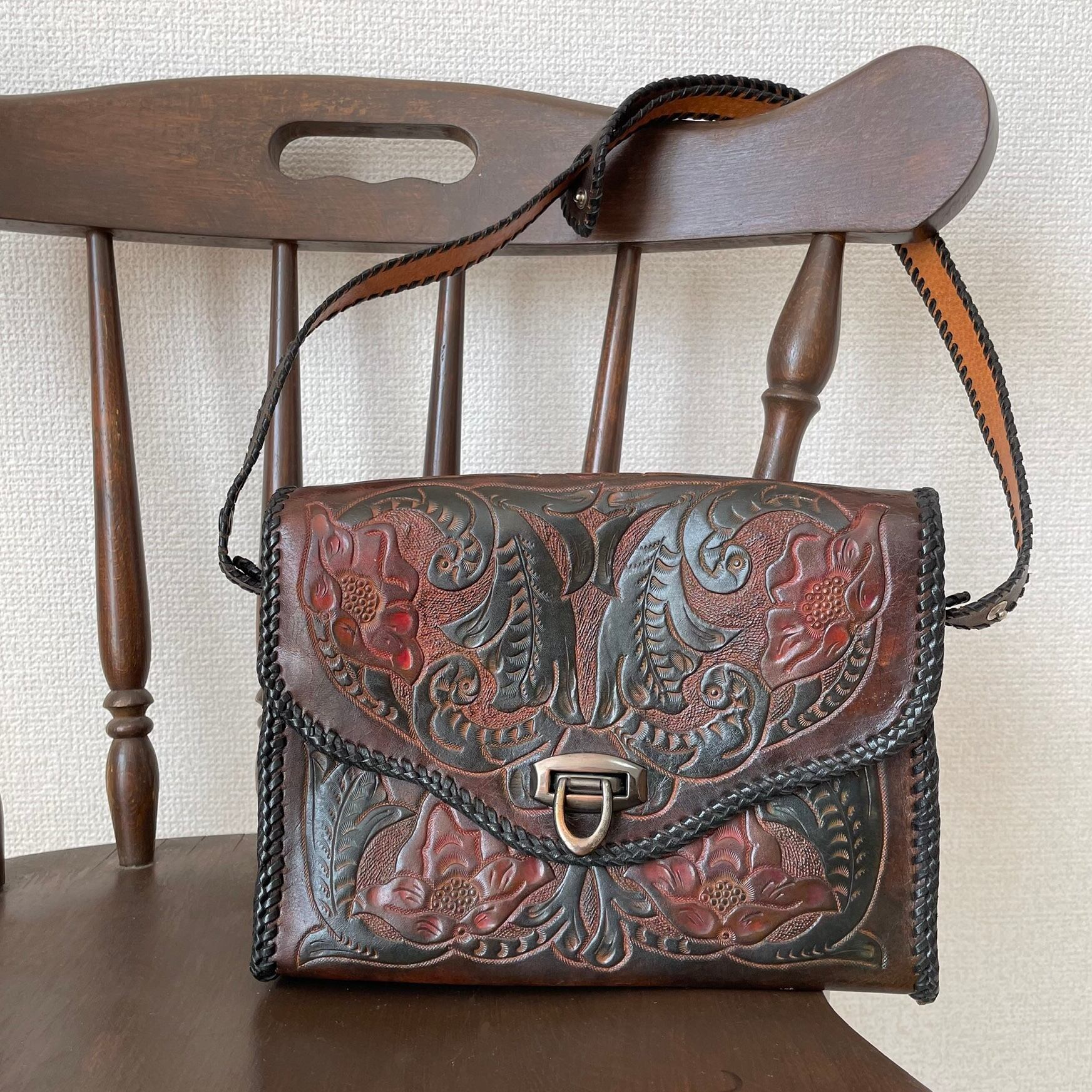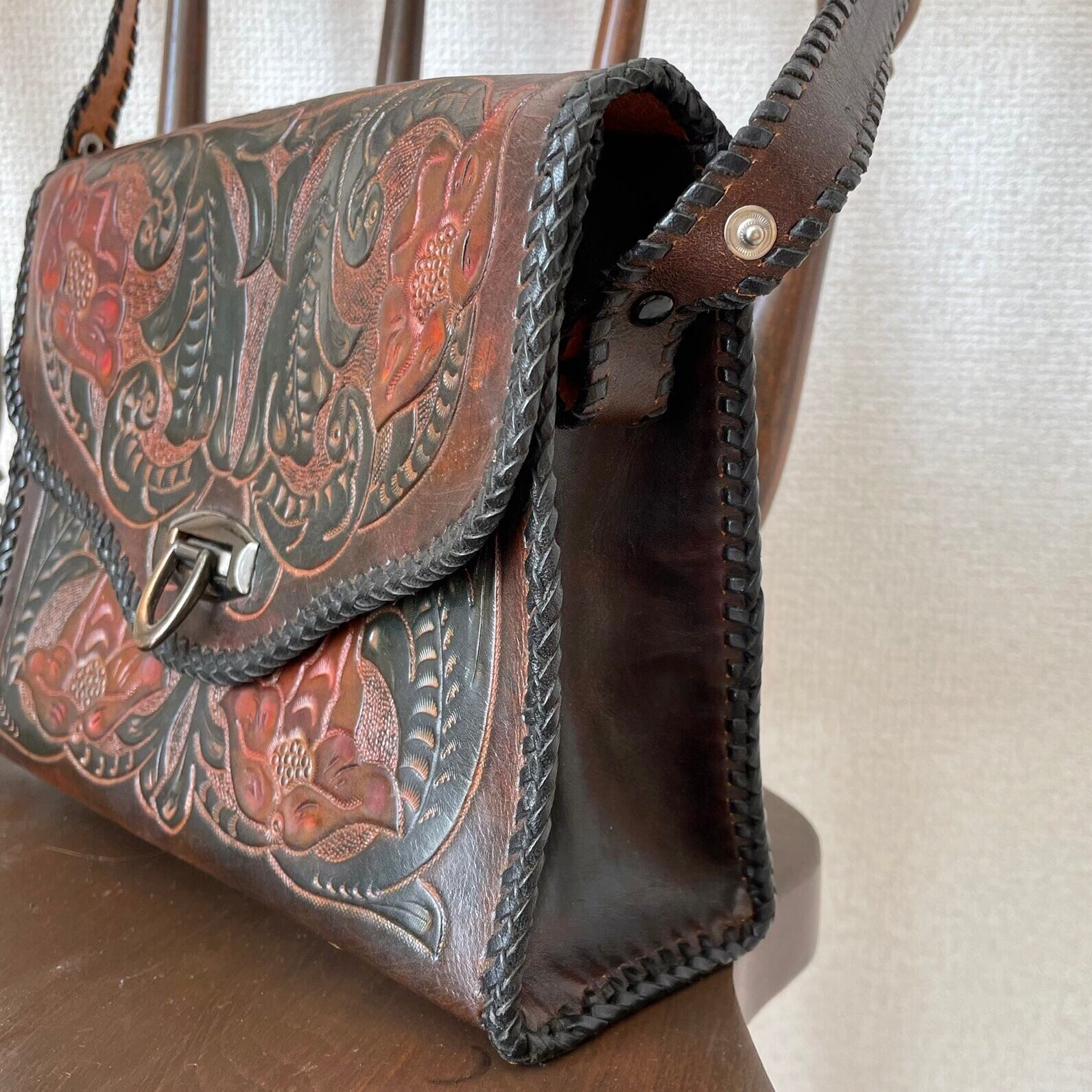 carving 2way bag〈レトロ古着 カービング2wayバッグ ハンドバッグ ショルダーバッグ〉
