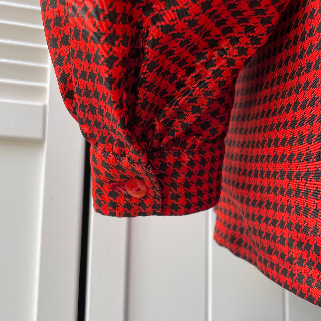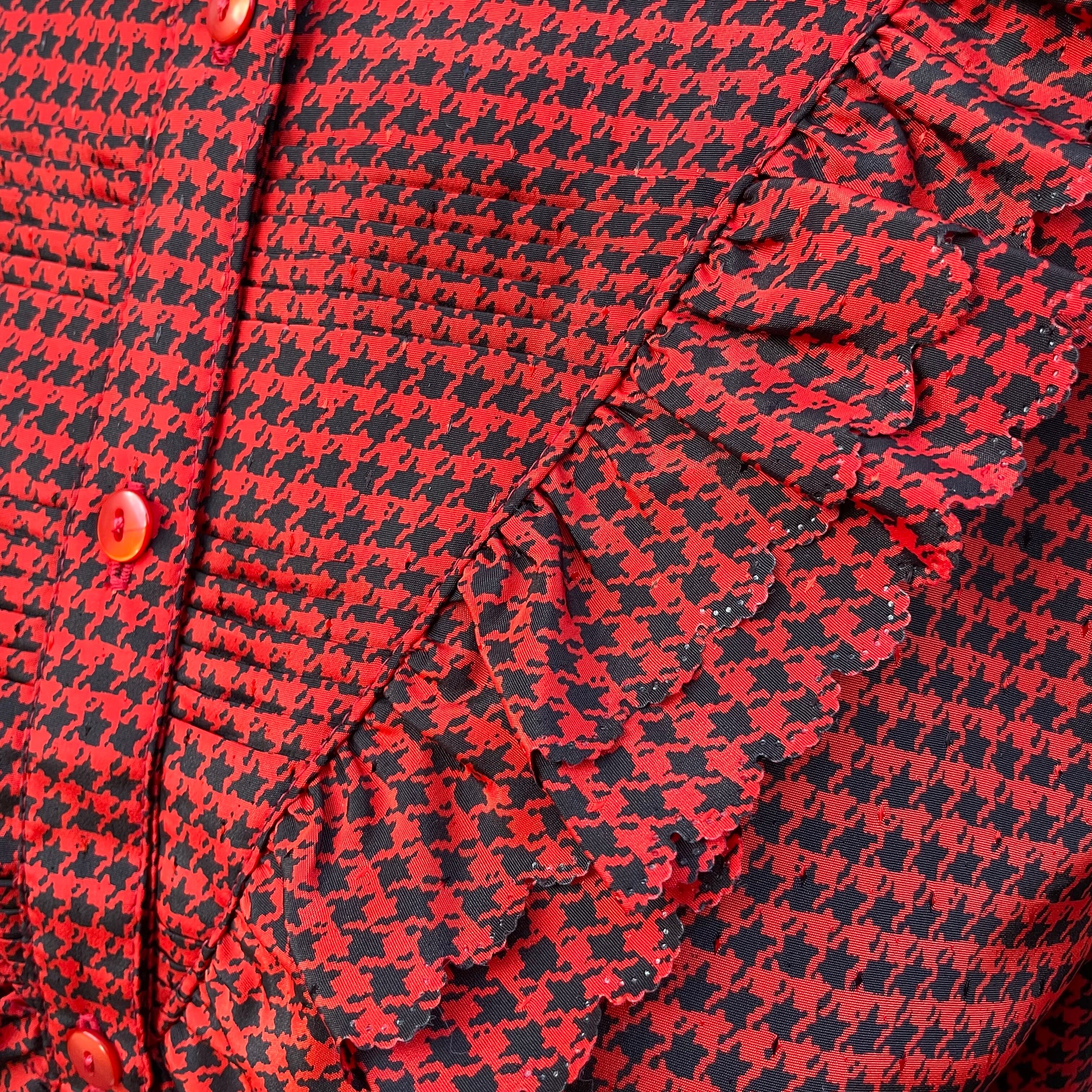 houndstooth yoke frill blouse 〈レトロ古着 千鳥格子ヨークフリルブラウス 赤チェック〉