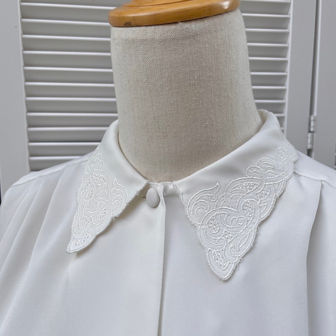 embroidery collar shoulder tuck blouse 〈レトロ古着 刺繍襟 肩タックホワイトブラウス 日本製〉