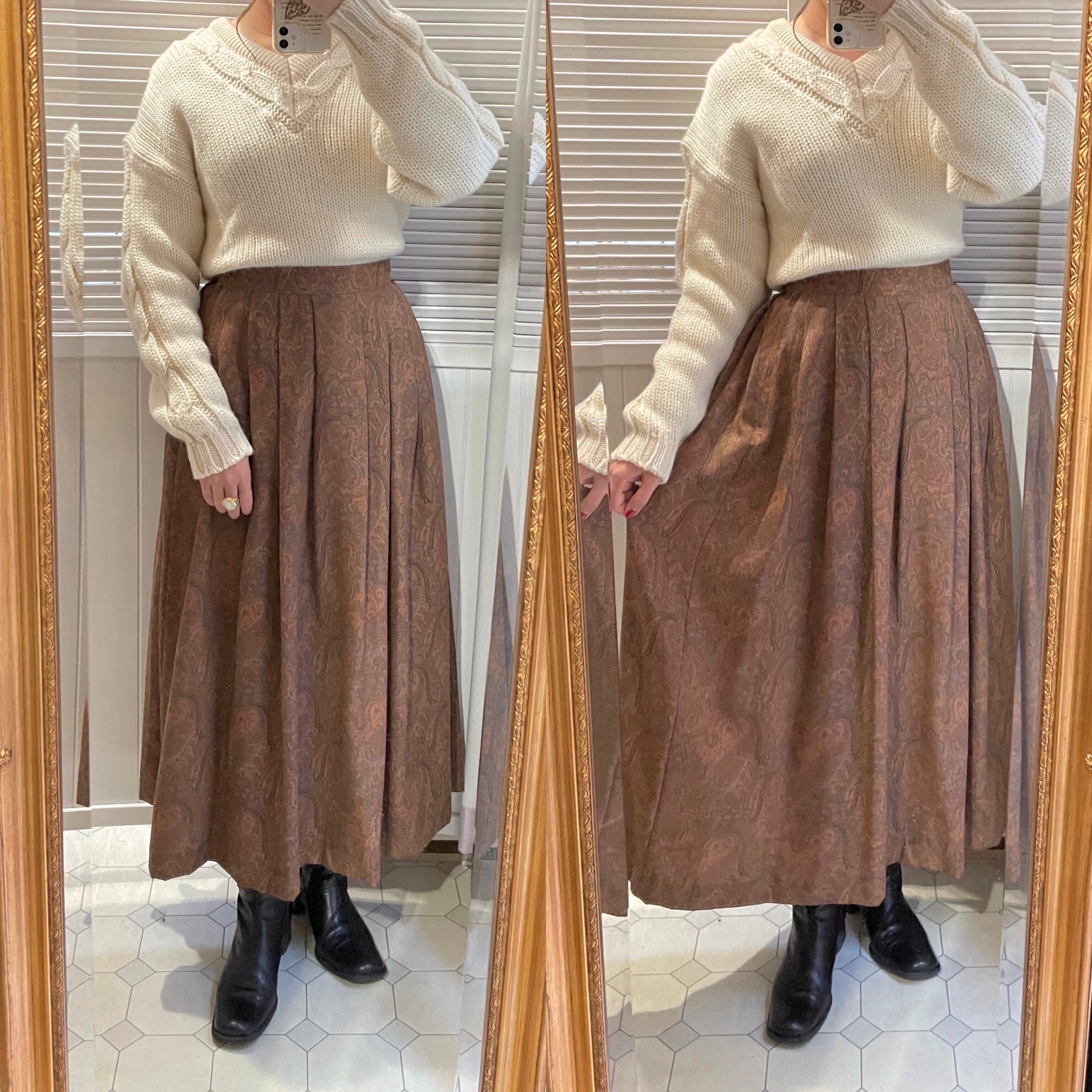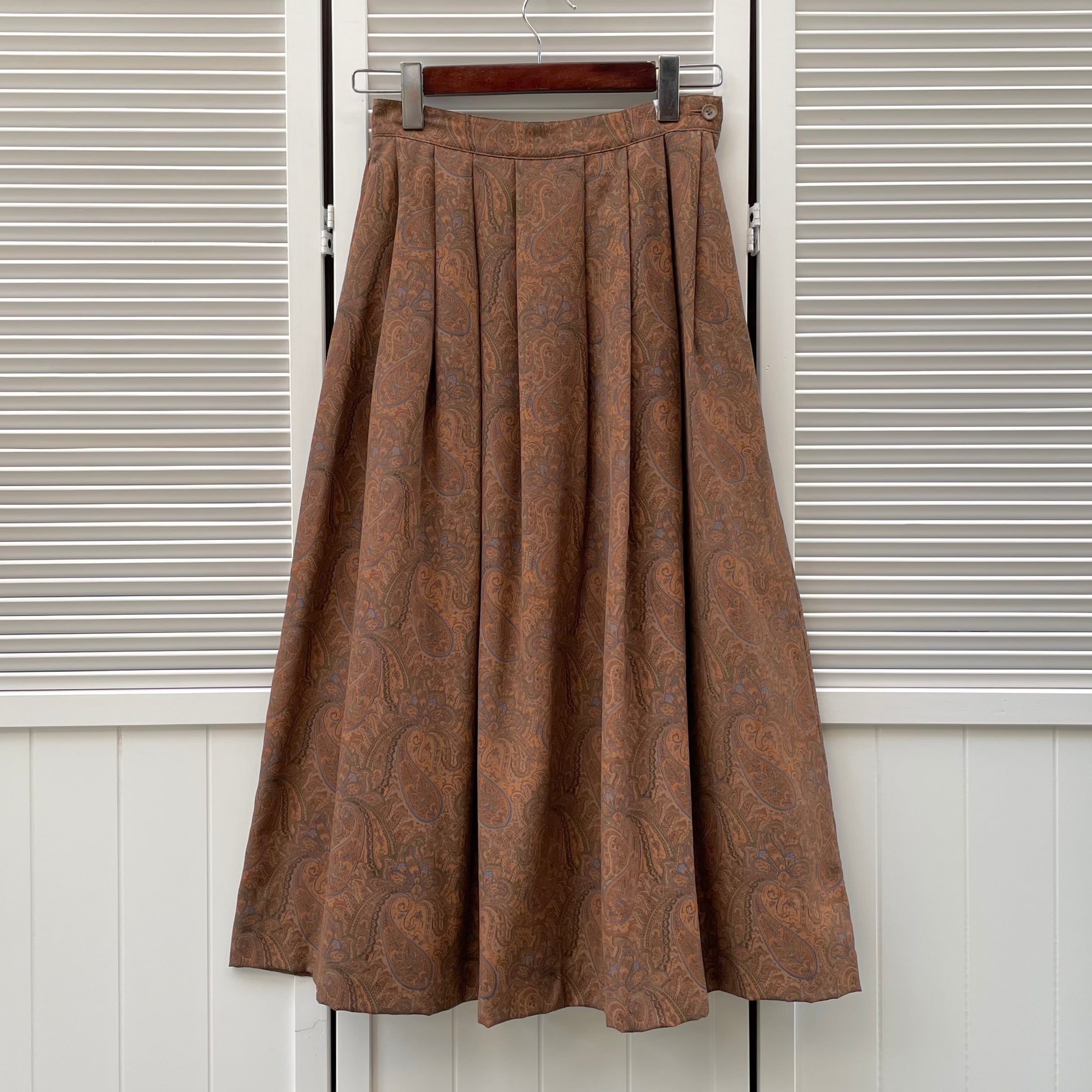 paisley tuck skirt 〈レトロ古着 ペイズリー柄タックスカート ブラウン〉