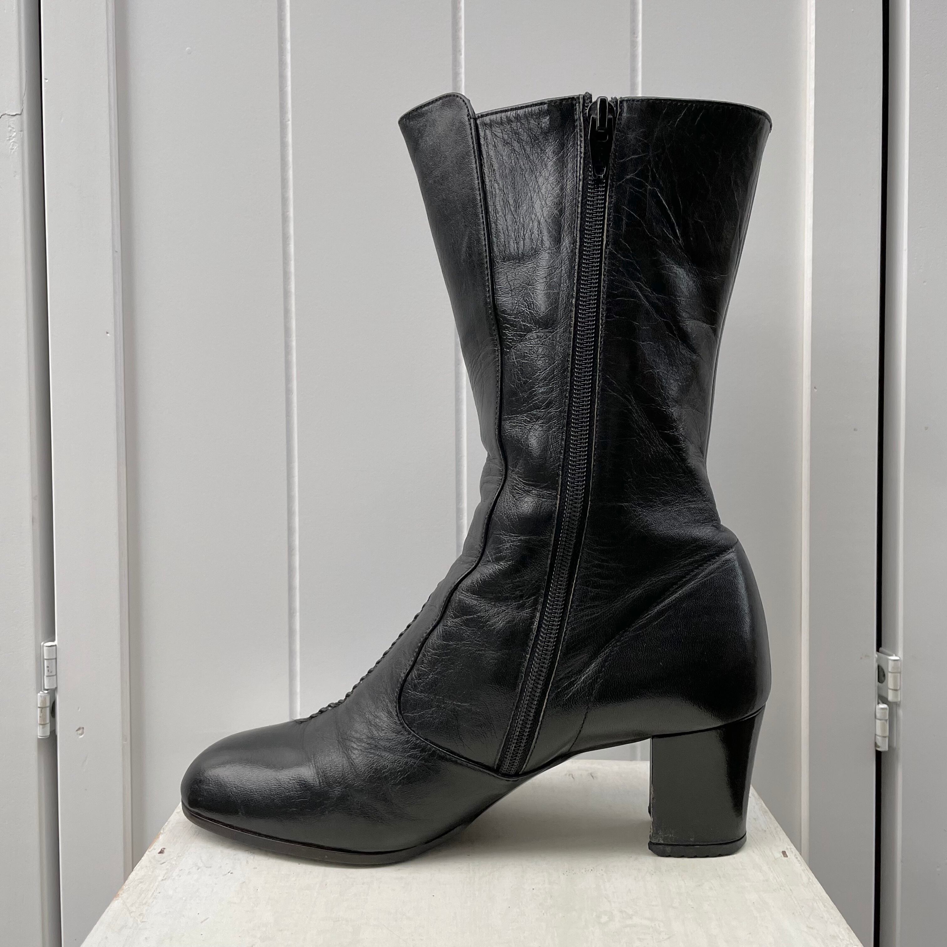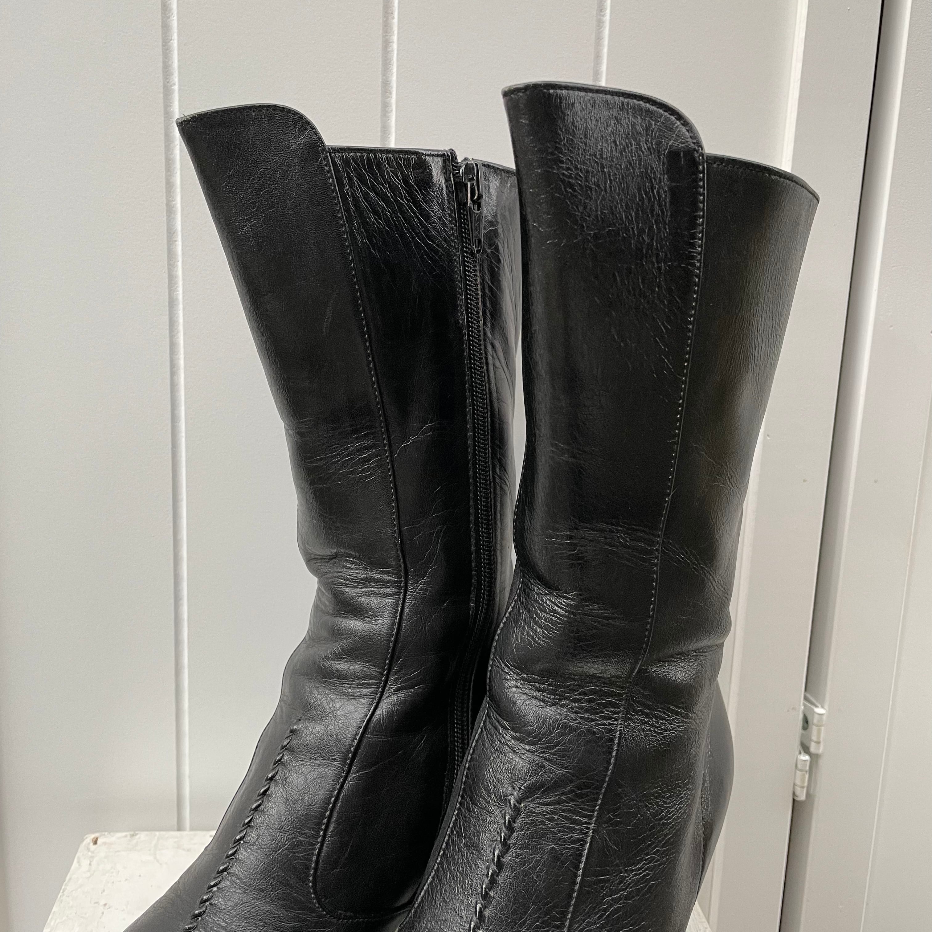 real leather middle boots〈レトロ古着 リアルレザーミドルブーツ 黒 ブラック 本革〉