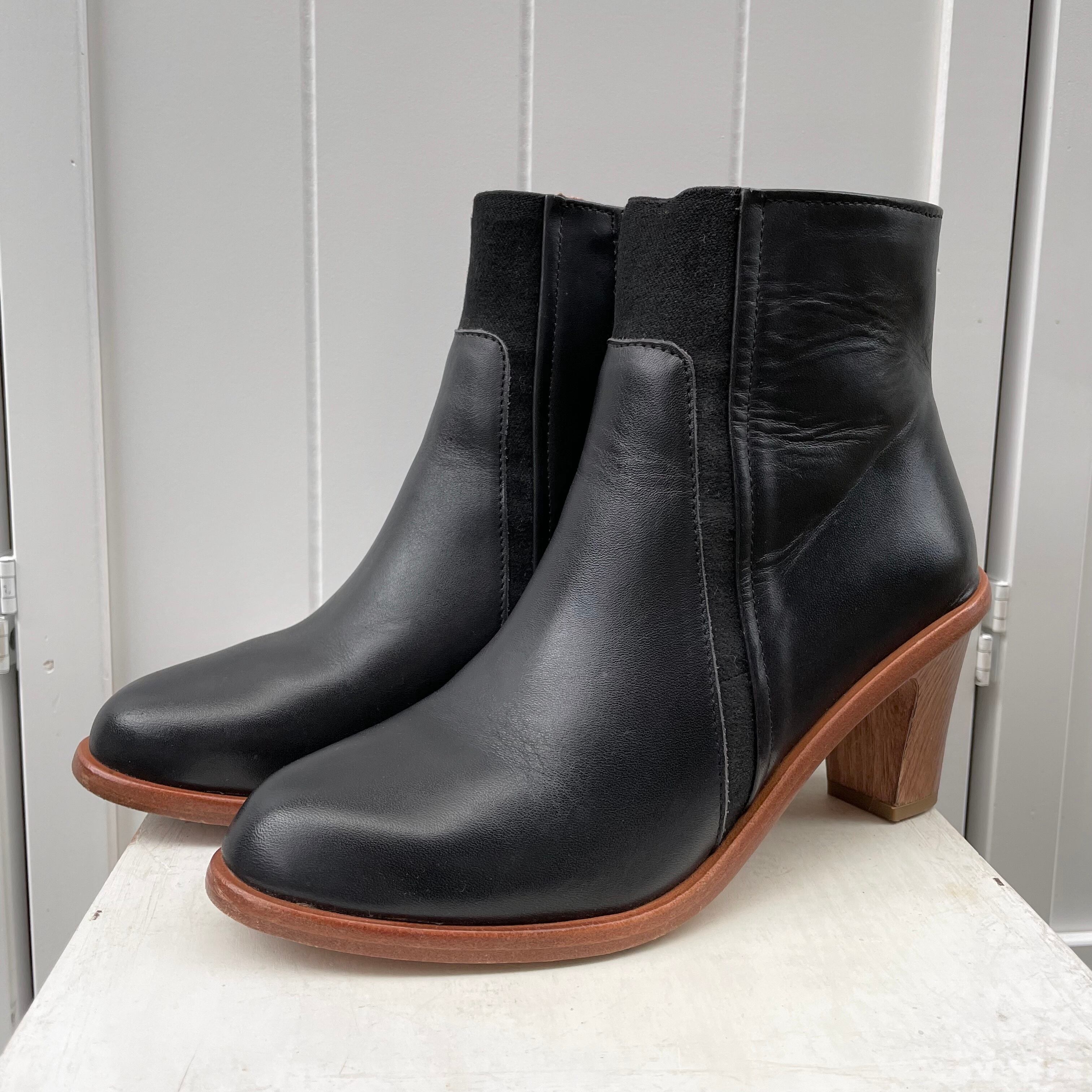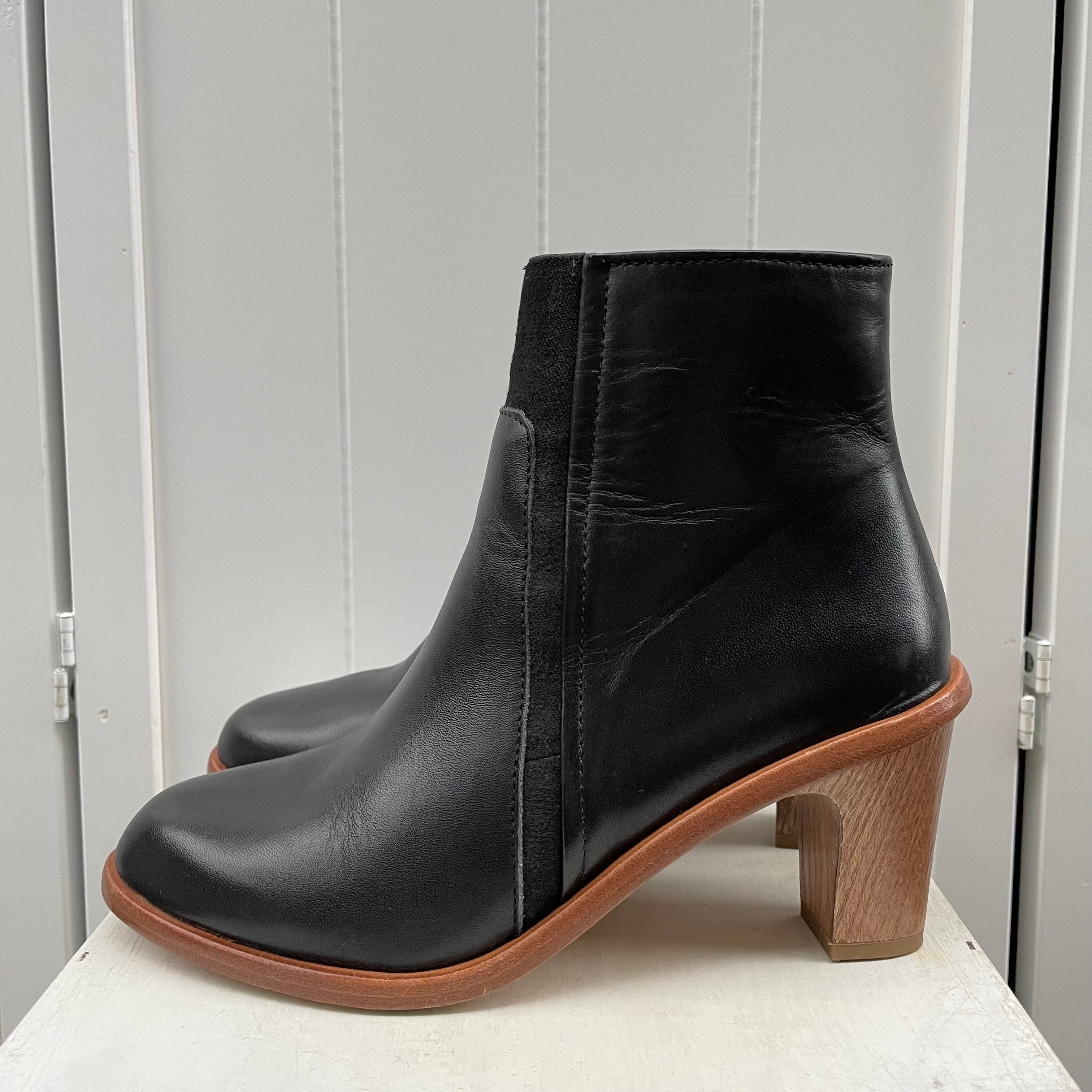 ウッドヒールとデザイン製あるゴアの切り替えがアクセントになったスペイン製のショートブーツ