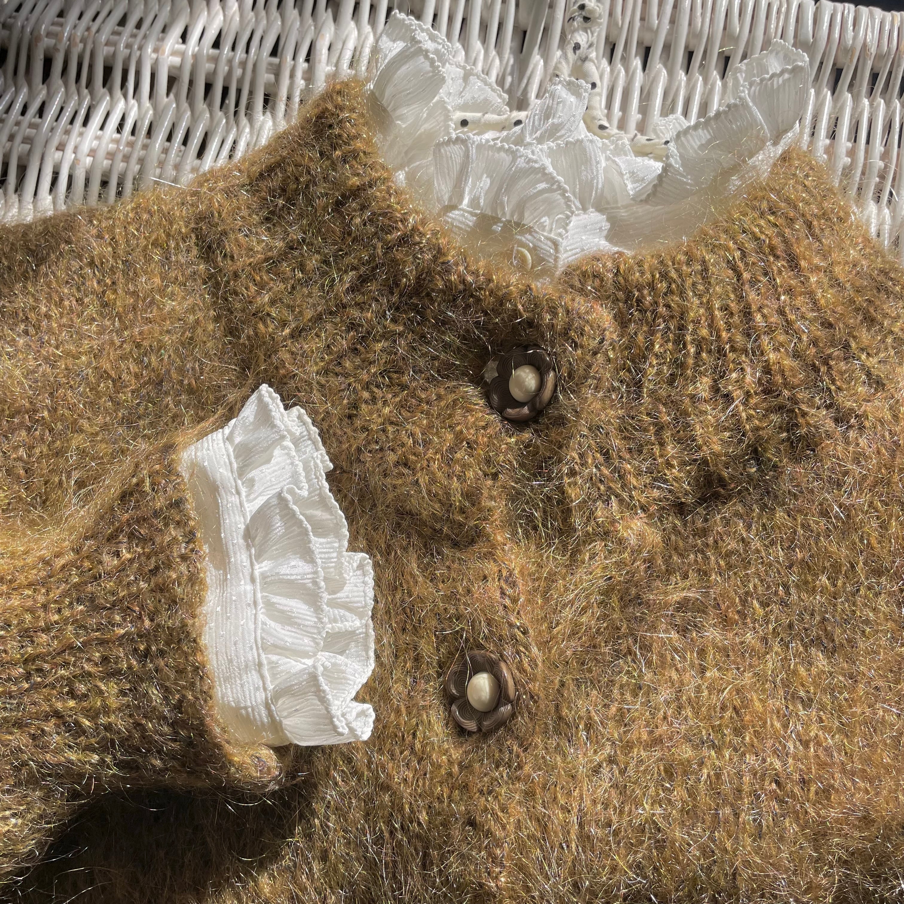 flower button mohair cardigan〈レトロ古着 フラワーボタンモヘアカーディガン ニット セーター〉