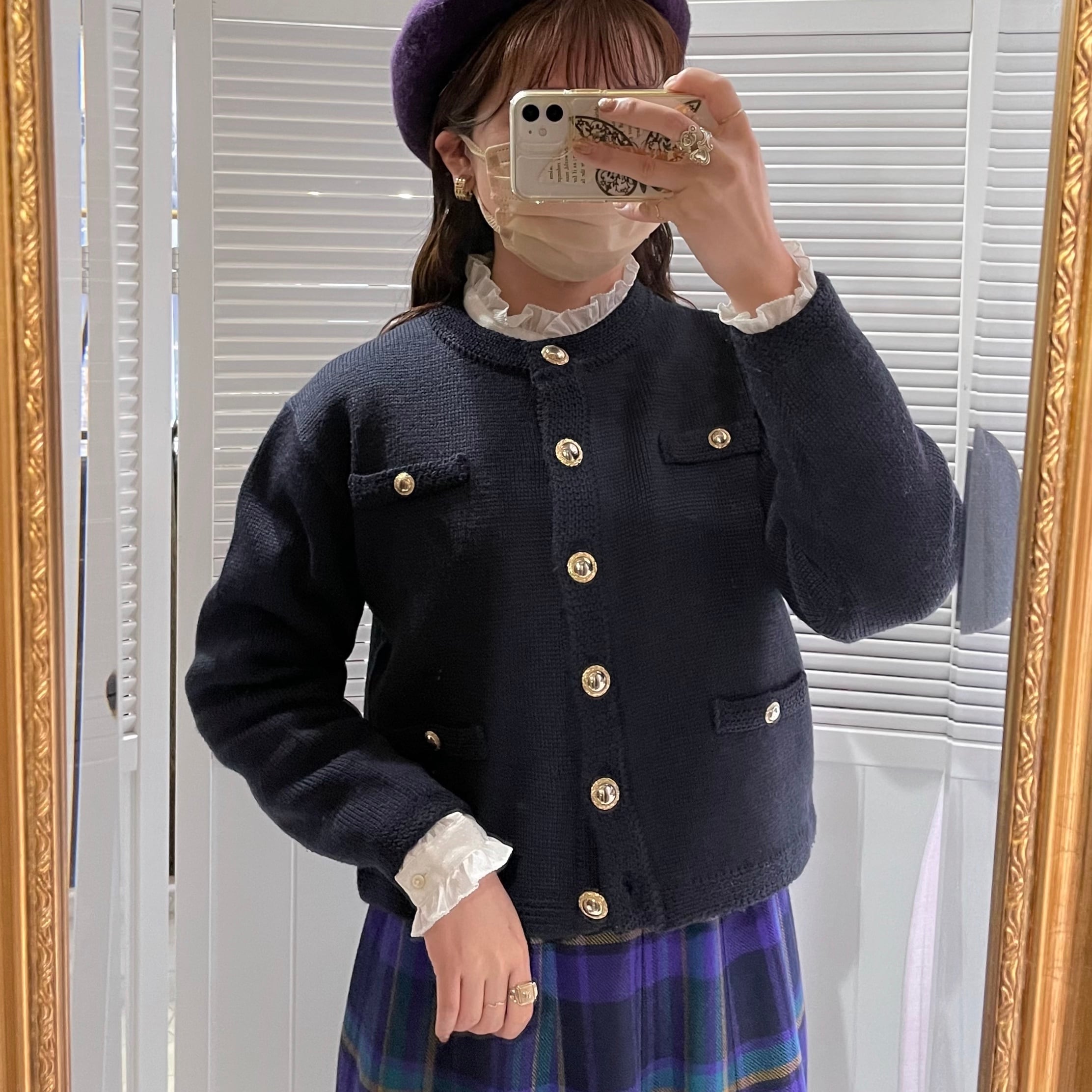 gold button jacket like cardigan 〈レトロ古着 金ボタン ジャケット風カーディガン ニット 日本製〉