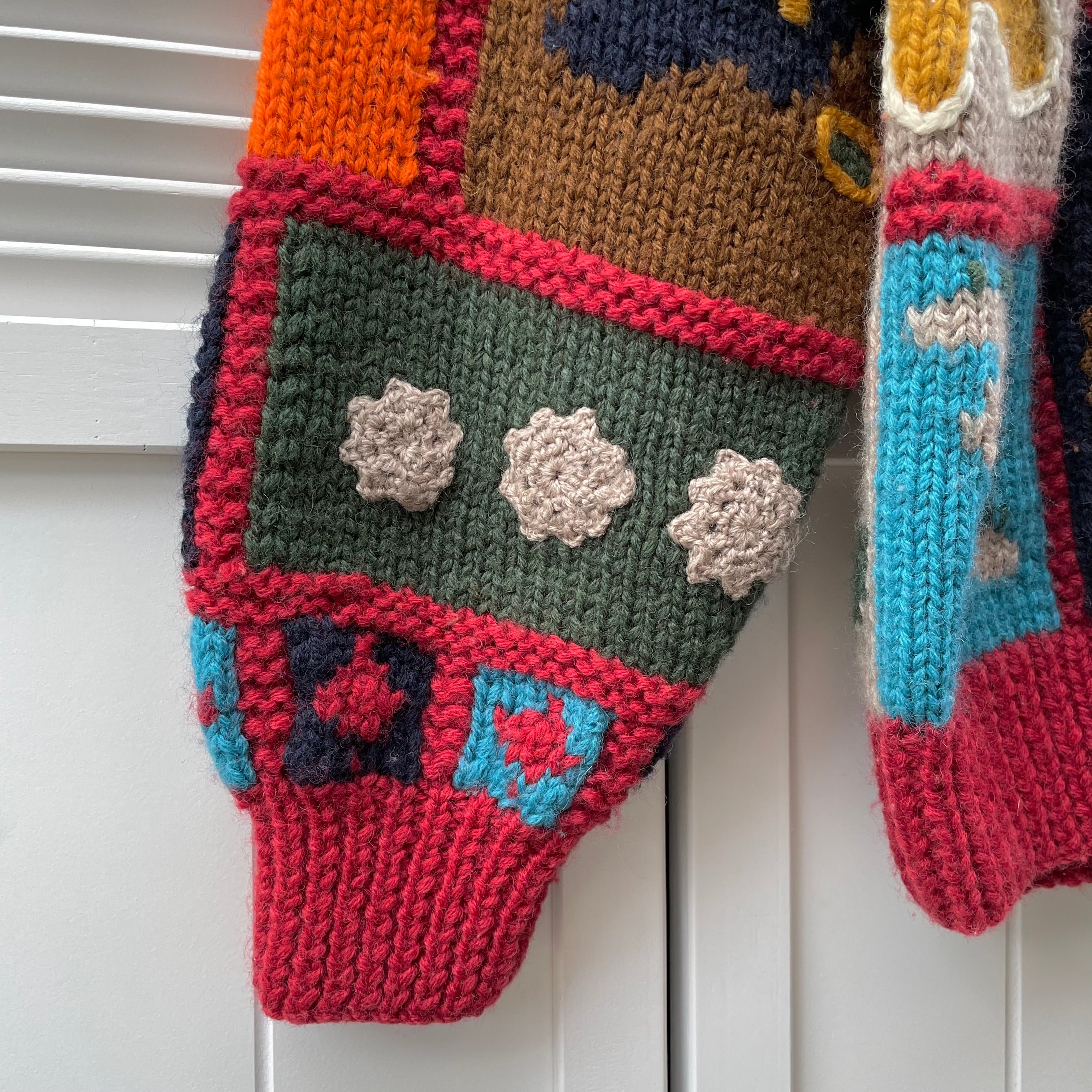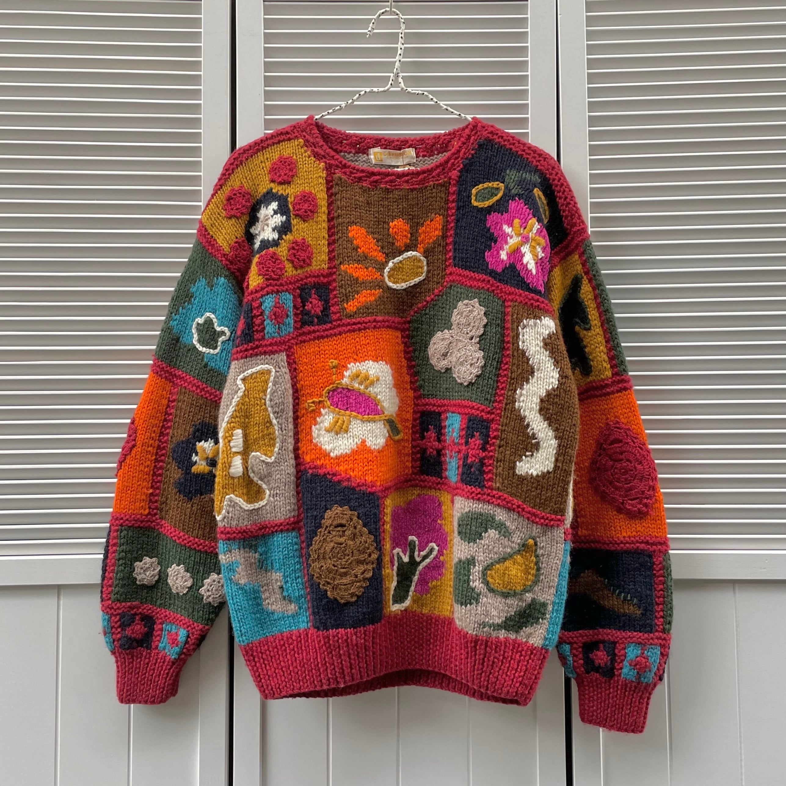 hand knit patchwork design sweater 〈レトロ古着 ハンドニット パッチワークデザインセーター 手編み カラフル 派手〉