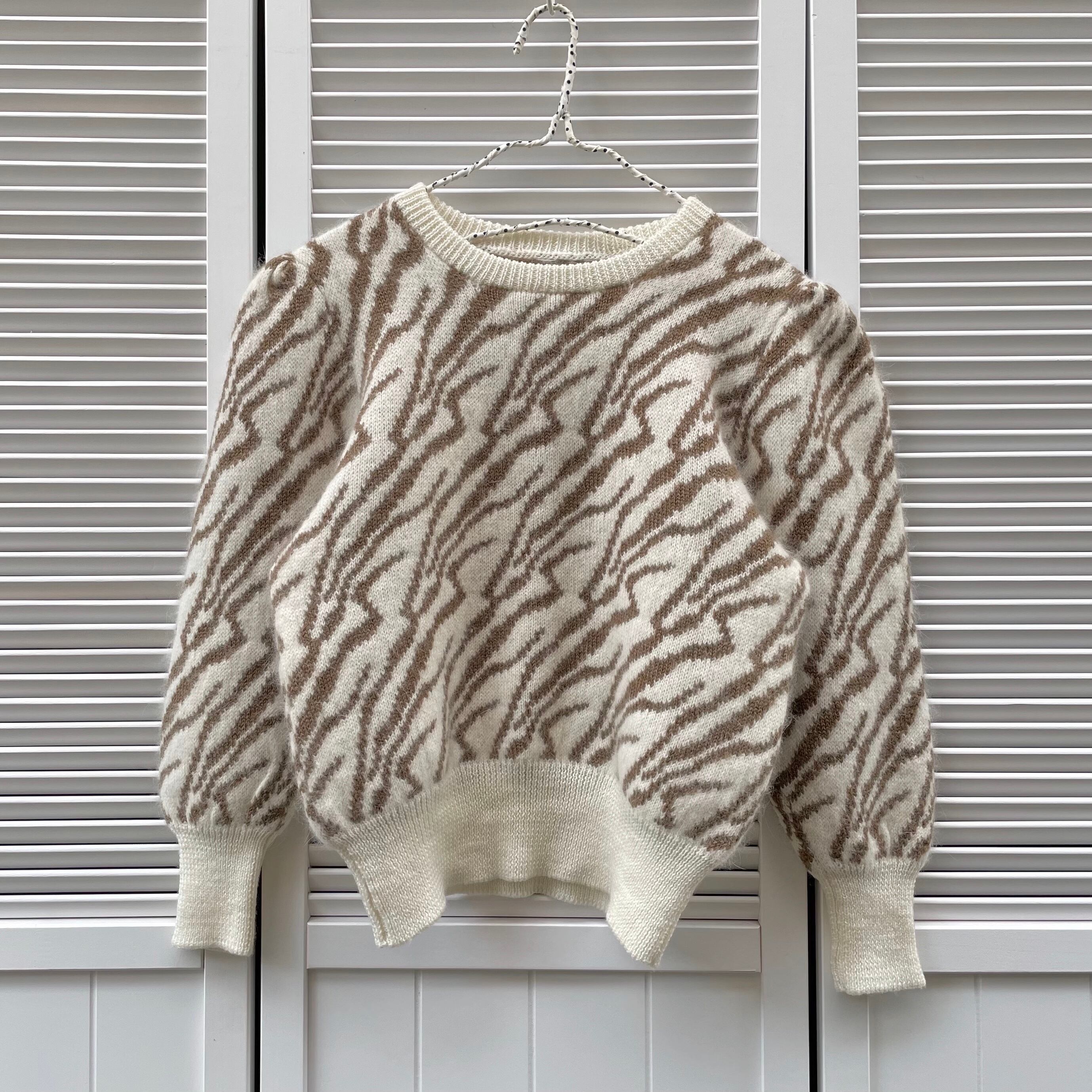 mohair touch zebra pattern knit 〈レトロ古着 モヘア風 ゼブラ柄ニット セーター アニマル柄 モヘヤ パワーショルダー〉
