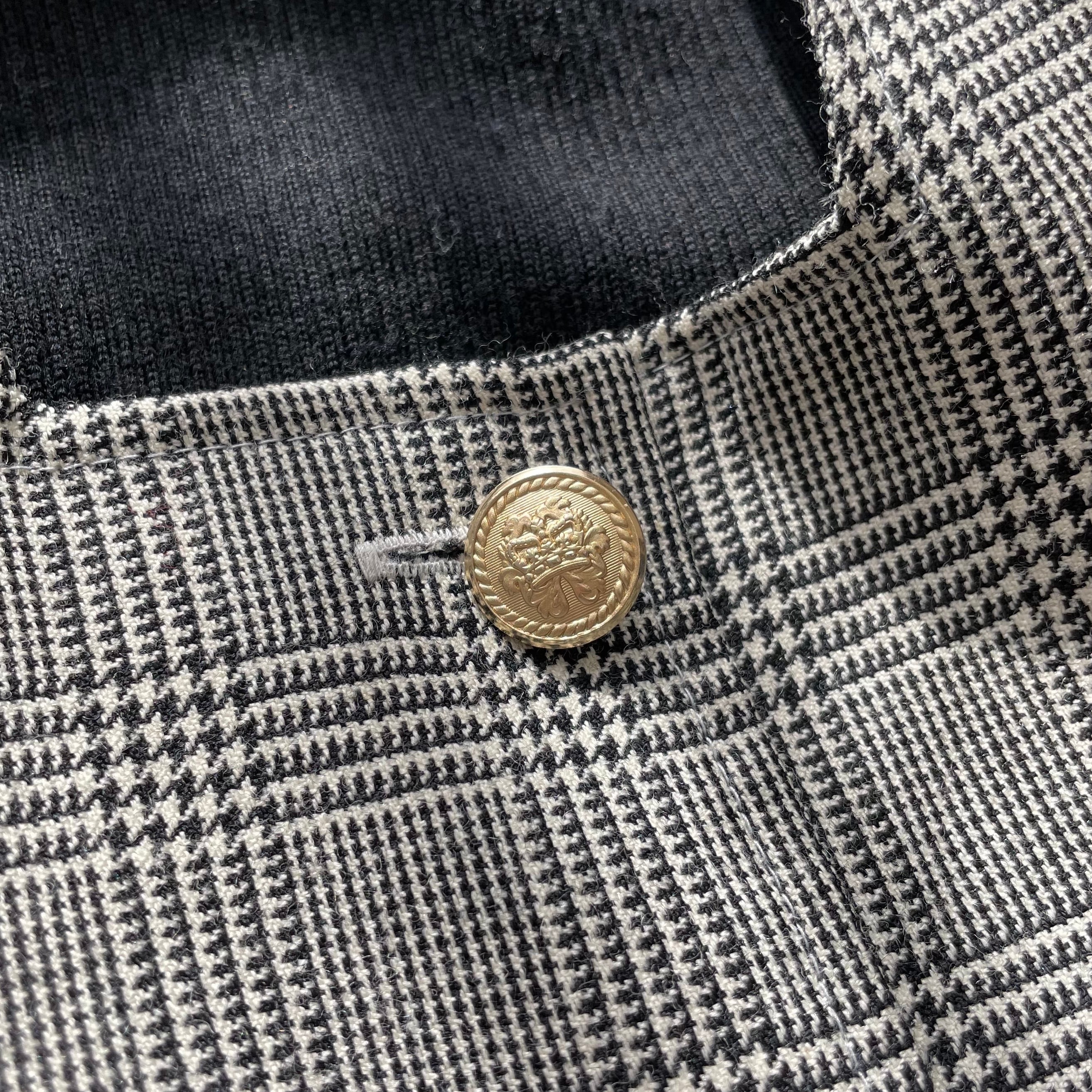 グレンチェックにマットな金ボタンが