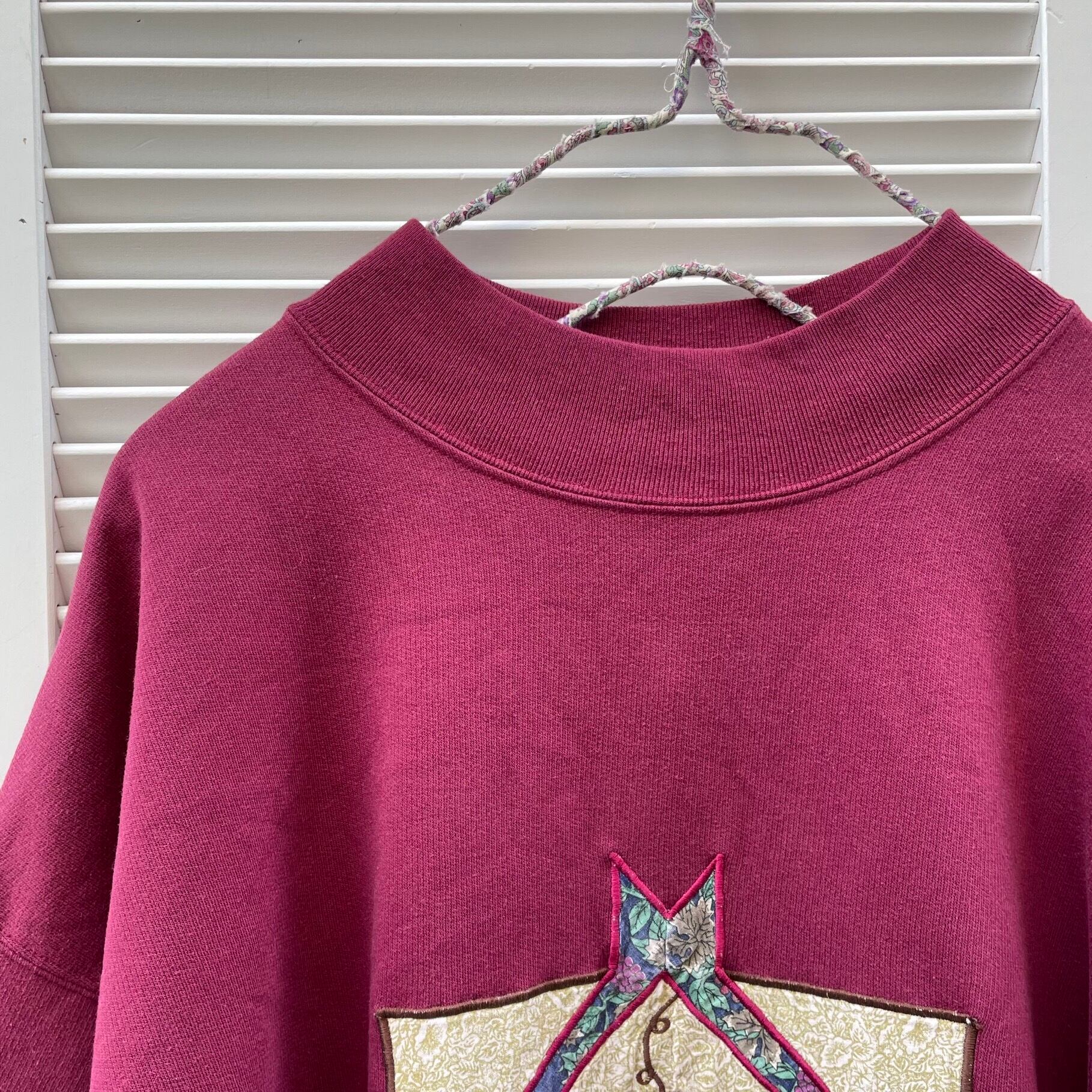 house motif patchwork sweat〈レトロ古着 パッチワーク ハウスモチーフ スウェット〉