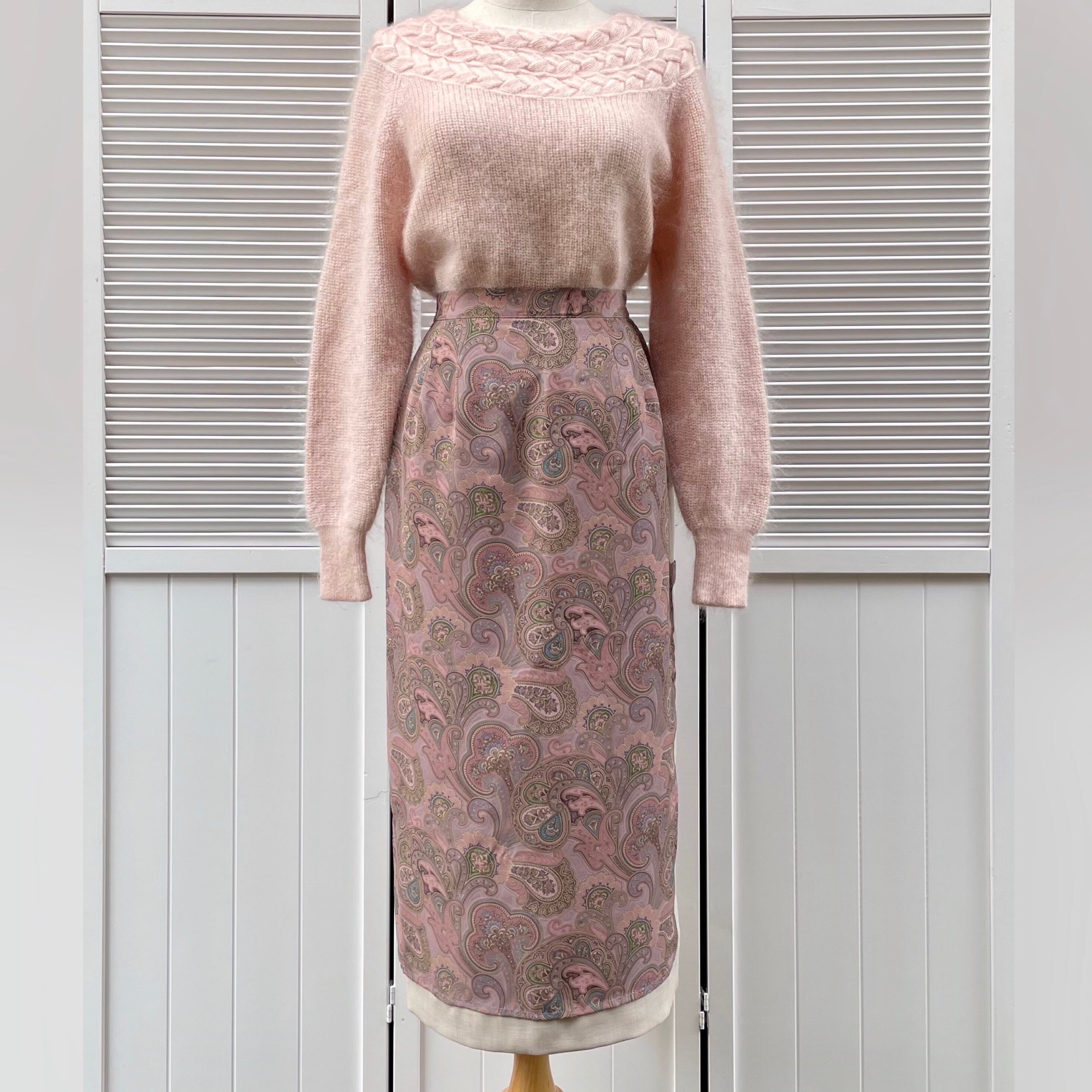 asymmetric paisley tight skirt〈レトロ古着 アシンメトリー ペイズリー柄タイトスカート ピンク 日本製〉