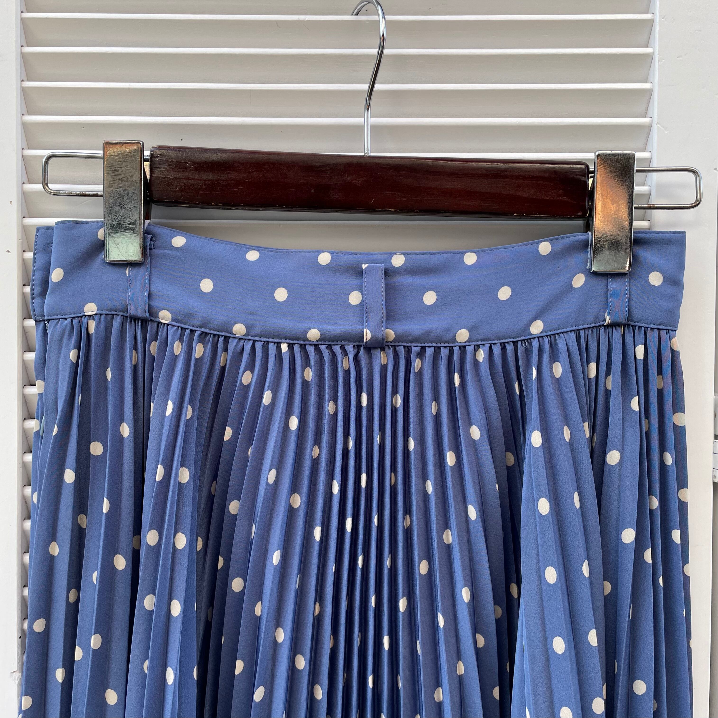 dot accordion pleated skirt〈レトロ古着 ドット柄 アコーディオンプリーツスカート 青 ブルー 水玉 日本製〉