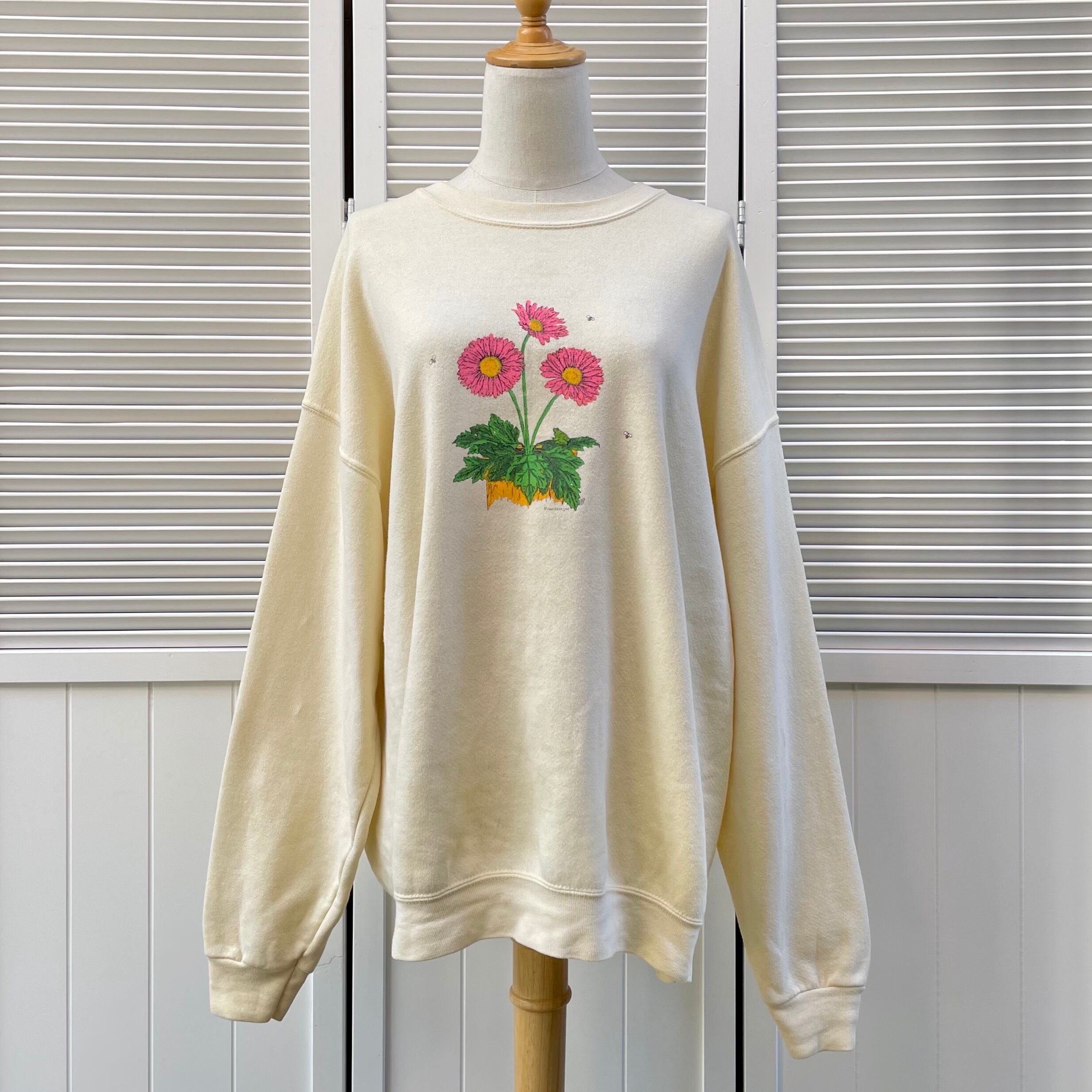 Lee flower print sweat〈レトロ古着 Lee フラワープリント スウェット 黄色 イエロー〉